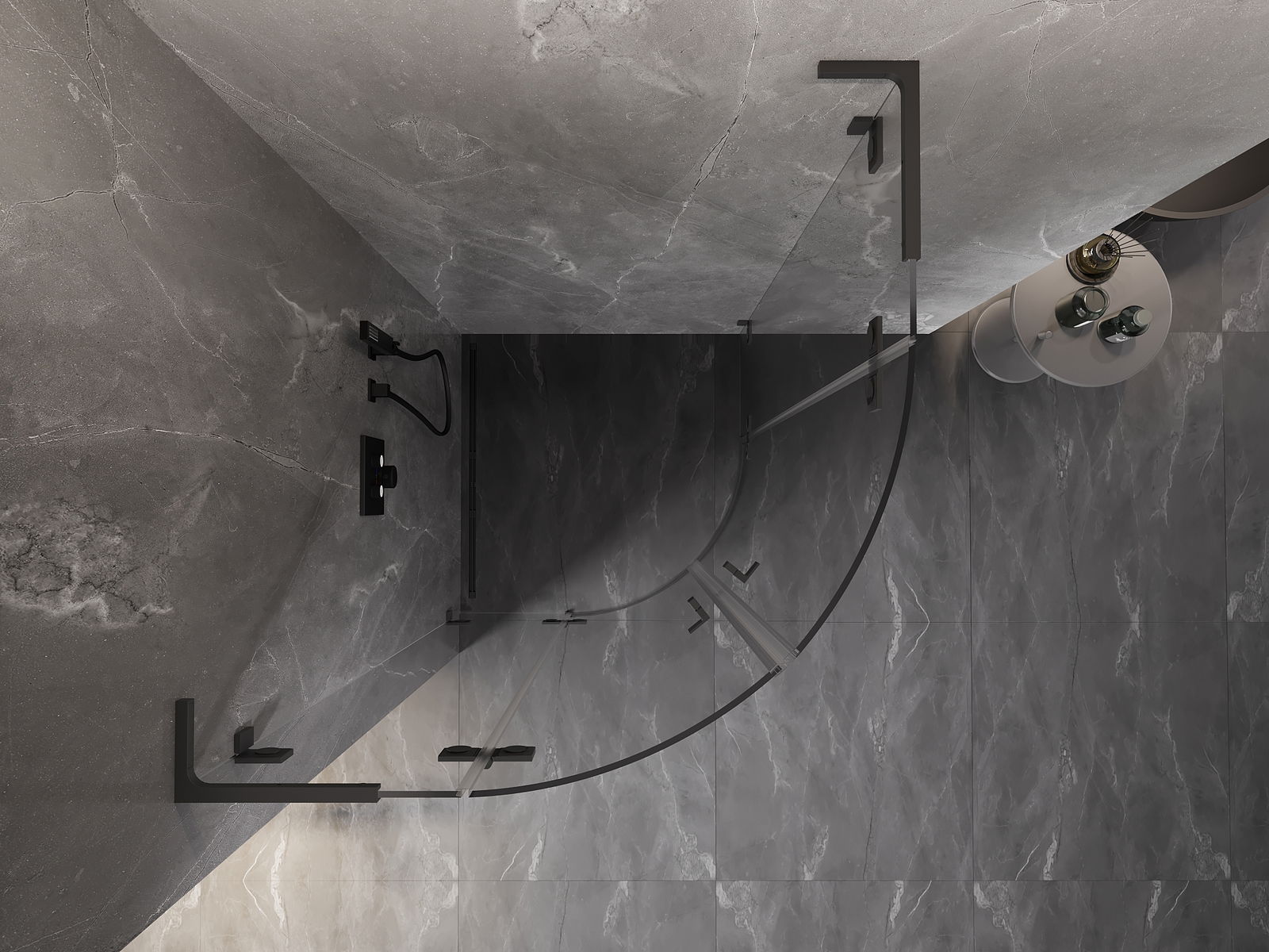 Mexen Lunar L cabina de ducha semicircular abatible 90 x 90 cm, transparente, metal oscuro - 833L-090L-090P-95-00