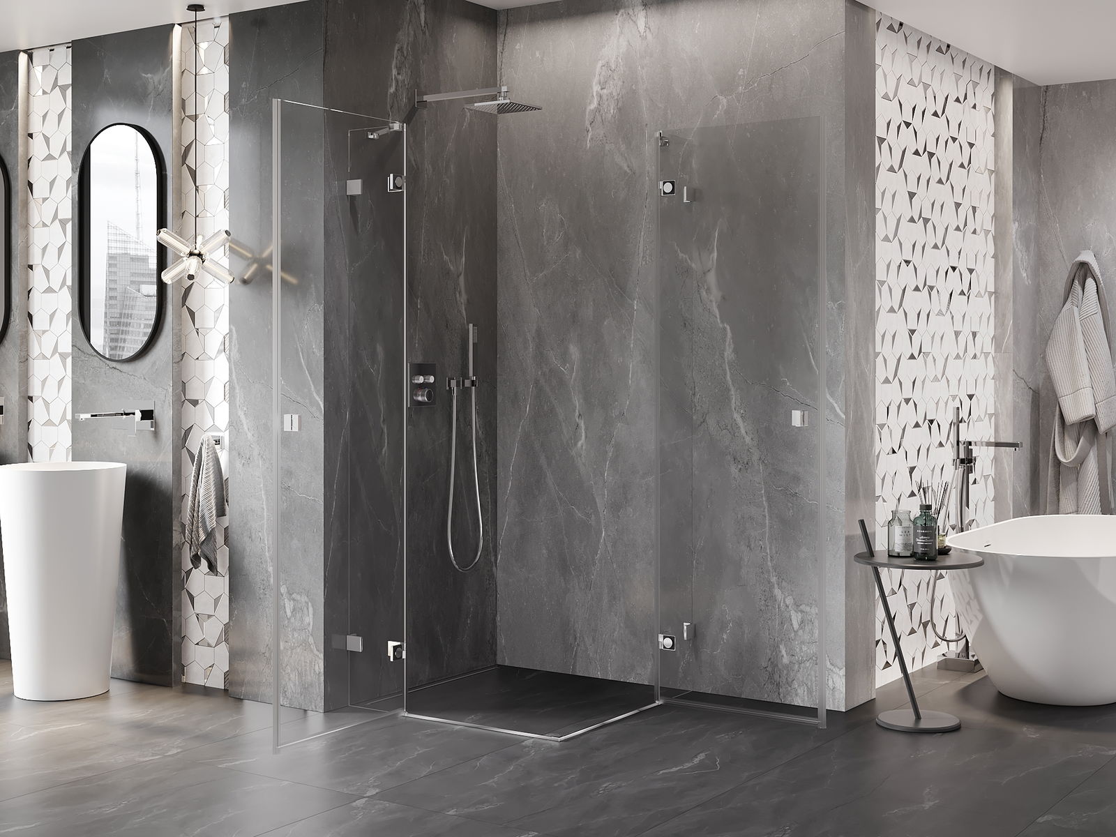 Las abrazaderas y bisagras están hechas de latón muy duradero, y además crean una superficie de vidrio al ras. Es una excelente opción que combina elegancia, durabilidad y diseño moderno. Gracias a tales soluciones, la ducha gana en estética y, al mismo tiempo, facilitan el mantenimiento de la limpieza.