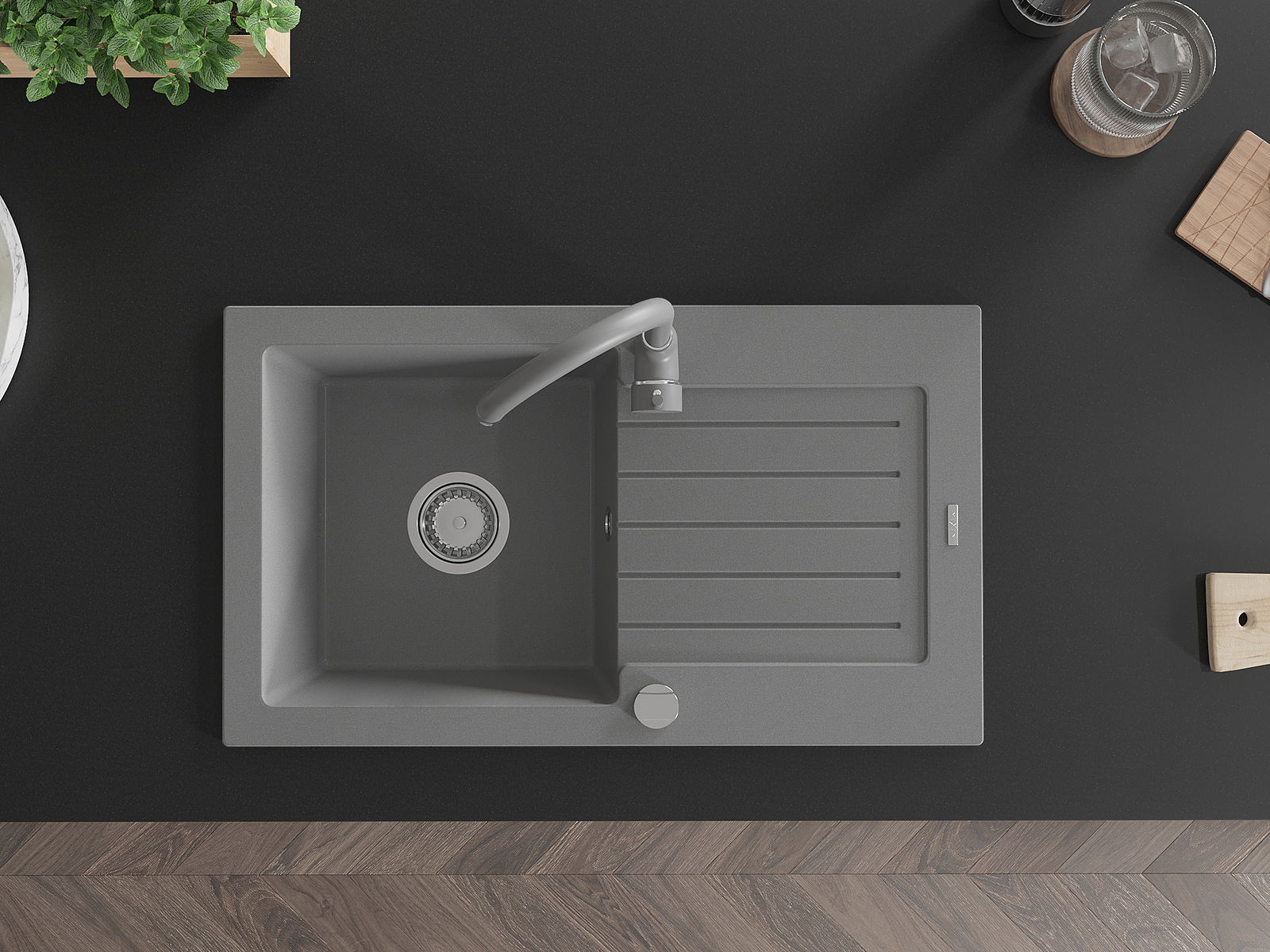 Mexen Pablo fregadero de granito de 1 cubeta con escurridor y grifo de cocina Telma, gris - 6510-71-670200-71