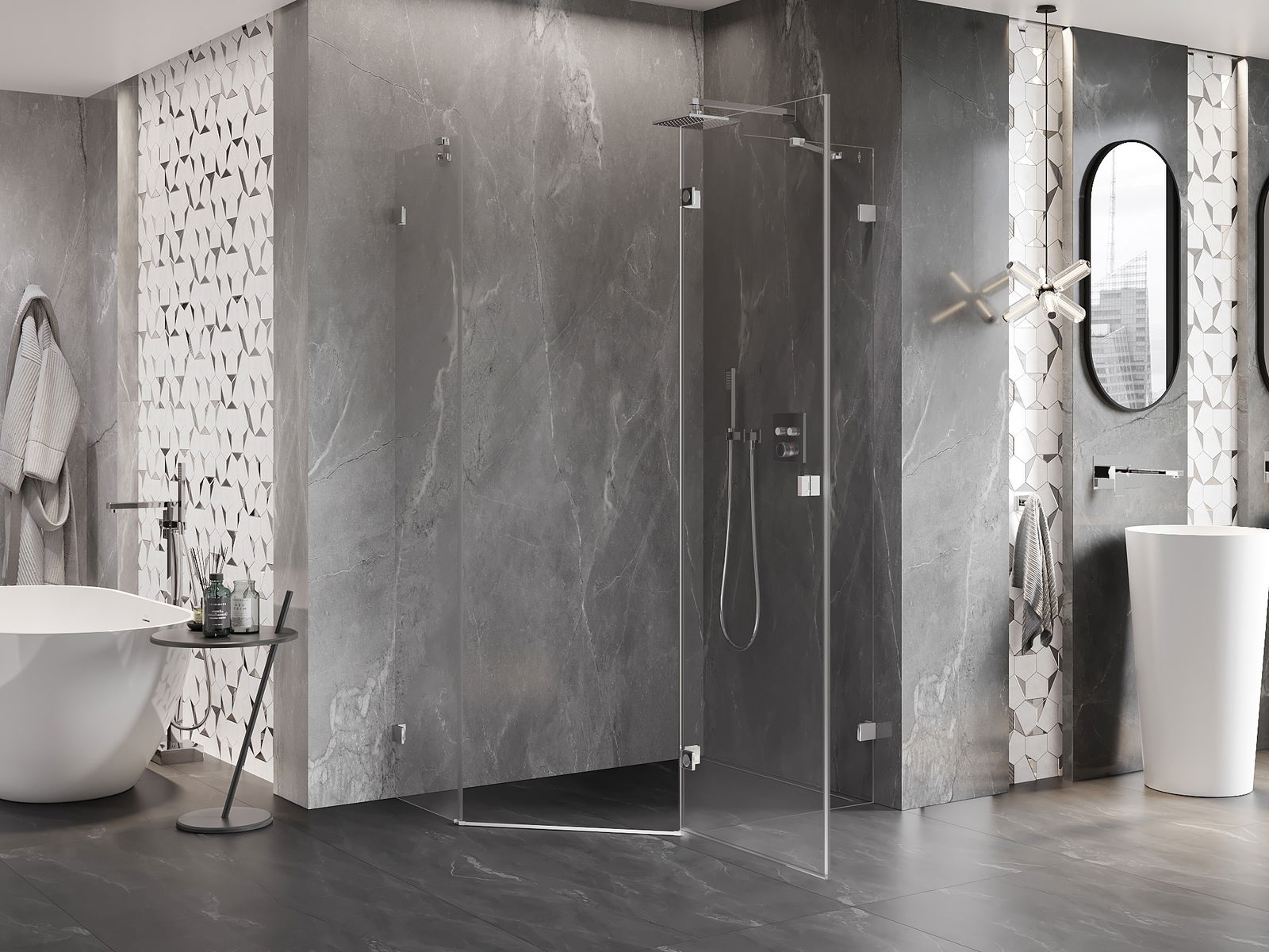 Mexen Lunar cabina de ducha pentagonal abatible derecha 90 x 80 cm, transparente, cromo - 831-090P-080L-01-00-P