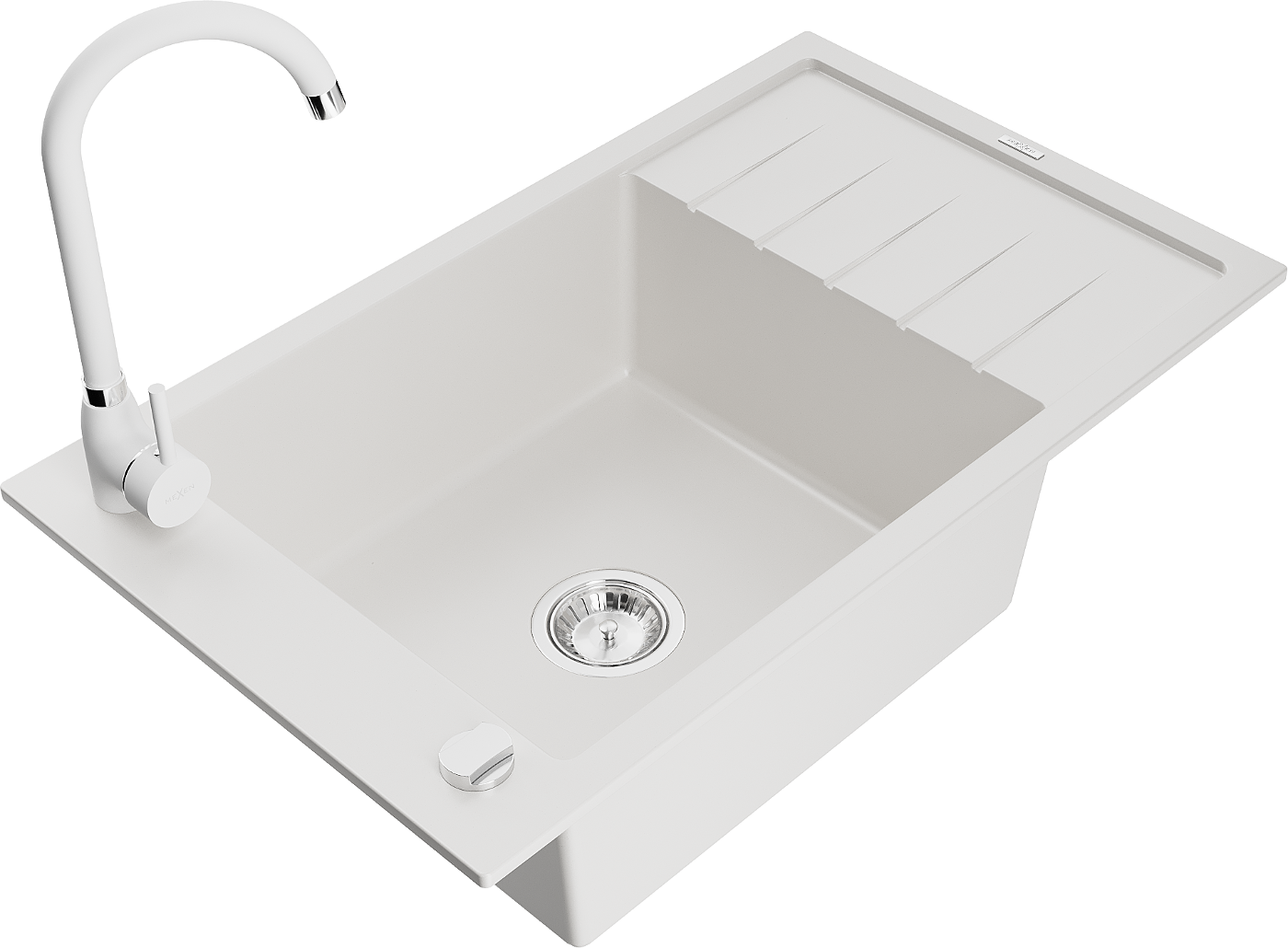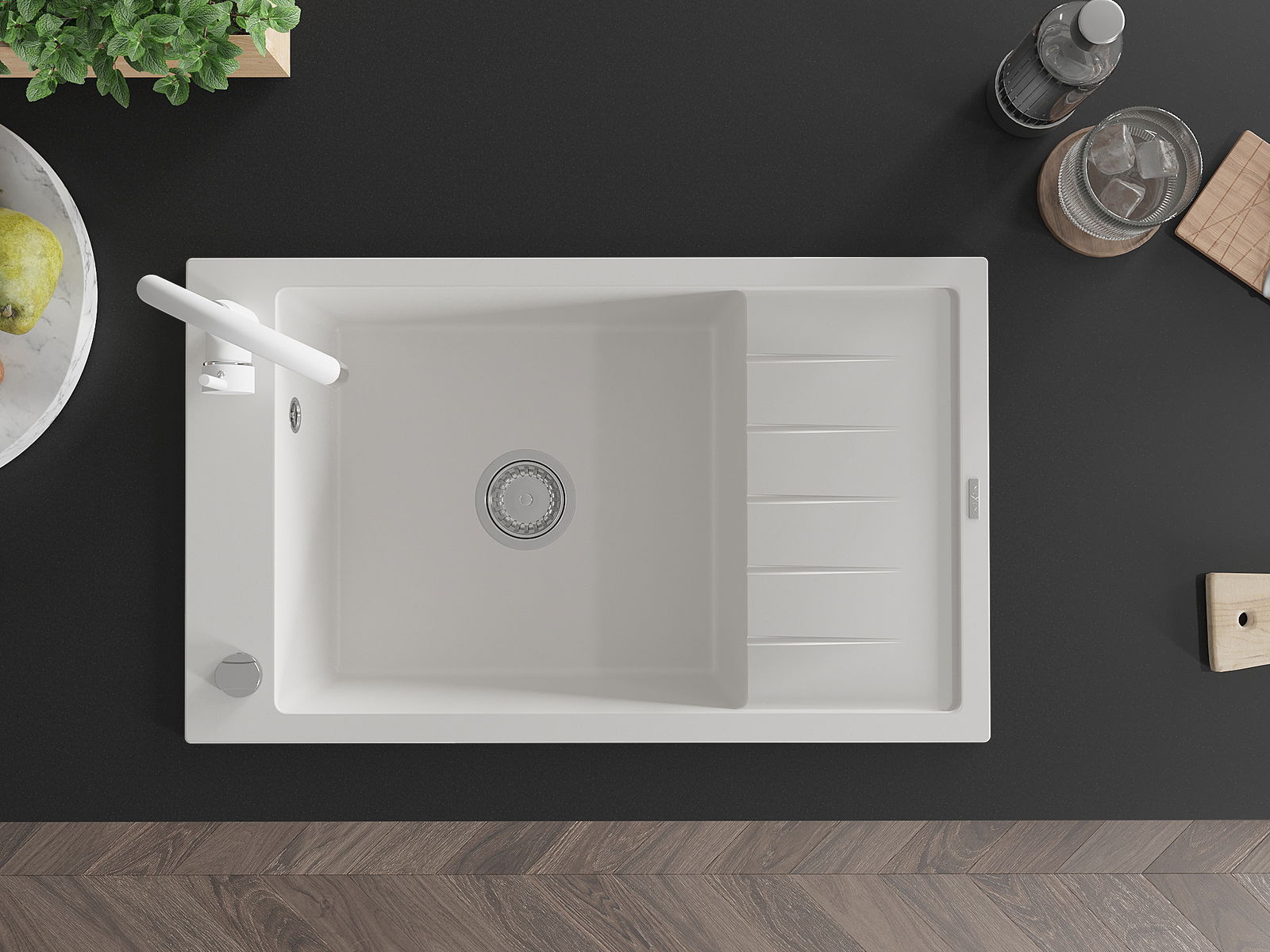 Mexen Elias fregadero de granito de 1 seno con escurridor y grifo de cocina Telma, blanco - 6511-20-670200-20