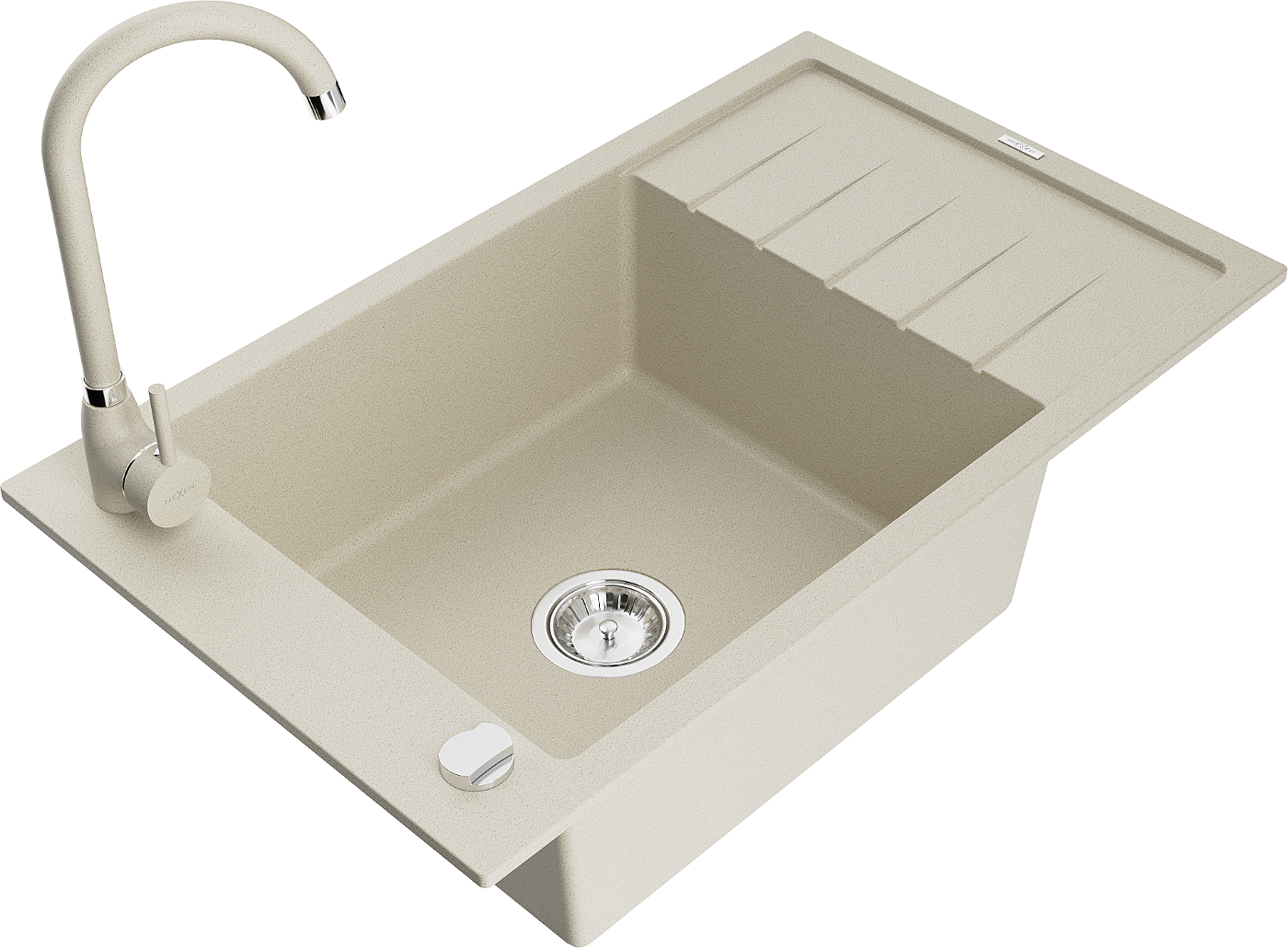 Mexen Elias fregadero de granito de 1 cubeta con escurridor y grifo de cocina Telma, beige - 6511-69-670200-69