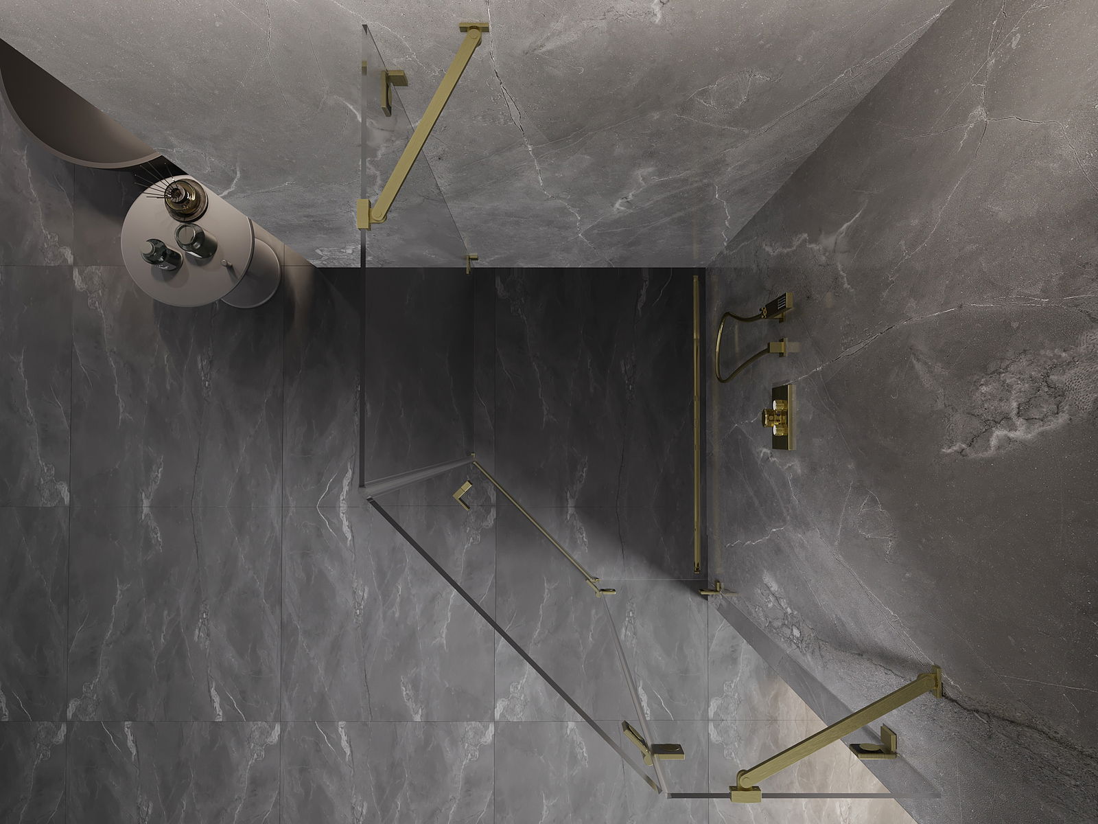 Mexen Lunar cabina de ducha pentagonal abatible derecha 90 x 100 cm, transparente, oro cepillado - 831-090P-100L-55-00-P