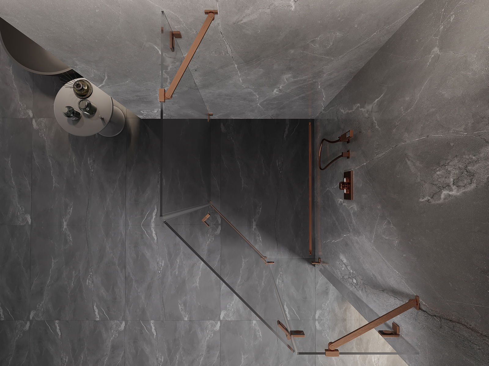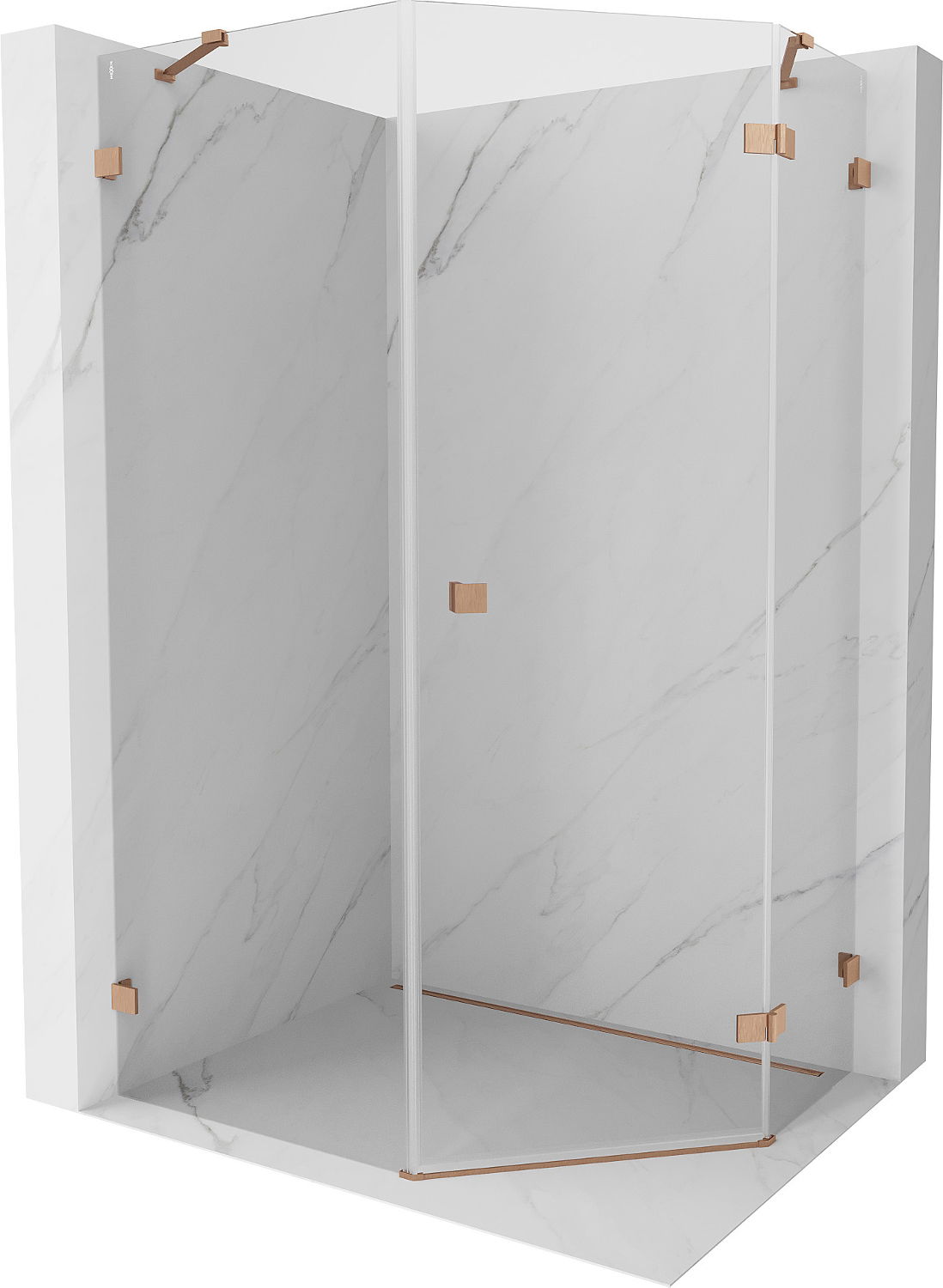 Mexen Lunar cabina de ducha pentagonal abatible derecha 80 x 100 cm, transparente, cobre cepillado - 831-080P-100L-65-00-P