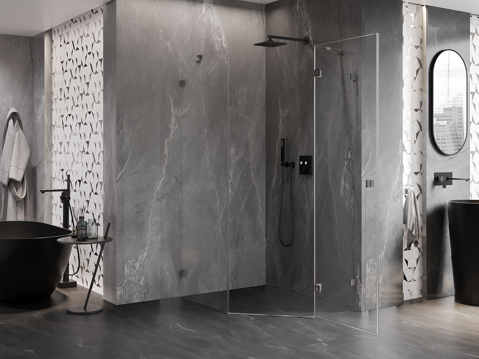 Mexen Lunar cabina de ducha pentagonal abatible derecha 90 x 100 cm, transparente, gris arma cepillado - 831-090P-100L-66-00-P