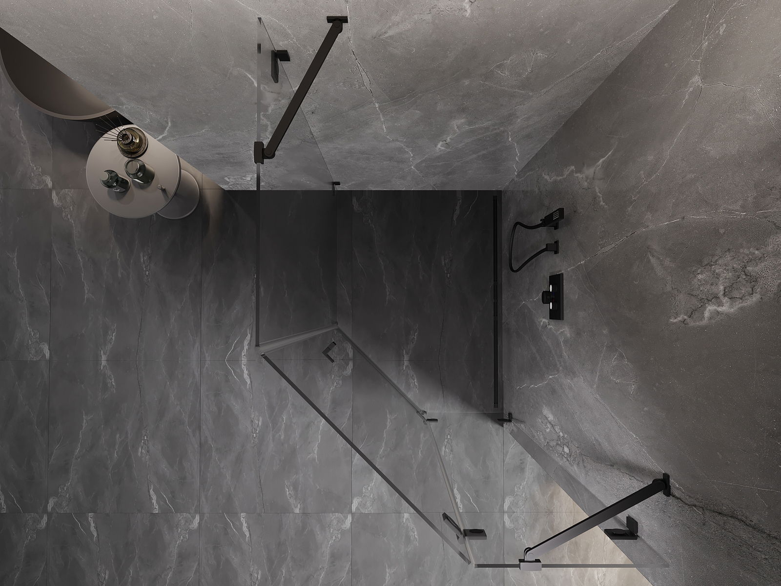 Mexen Lunar cabina de ducha pentagonal abatible derecha 90 x 100 cm, transparente, negro - 831-090P-100L-70-00-P