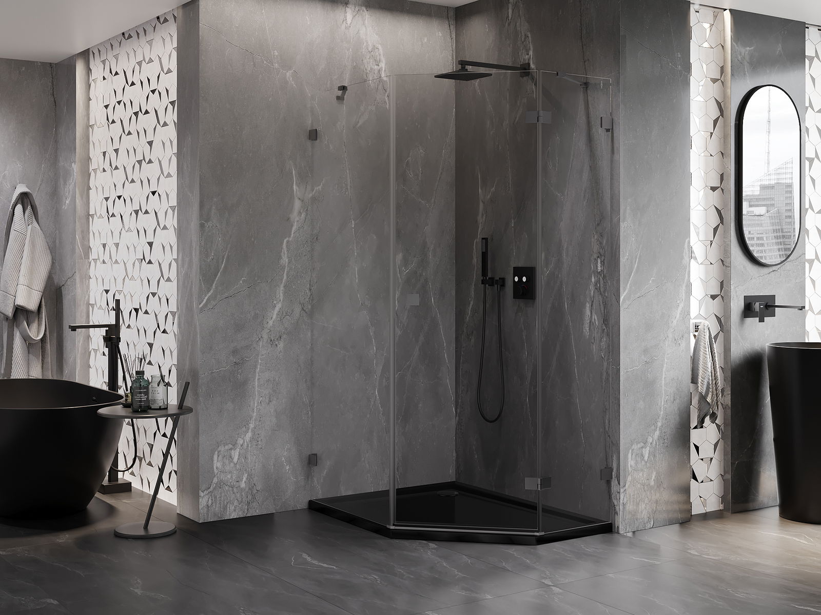 Mexen Lunar cabina de ducha pentagonal abatible derecha 80 x 90 cm, transparente, gun metal - 831-080P-090L-95-00-P