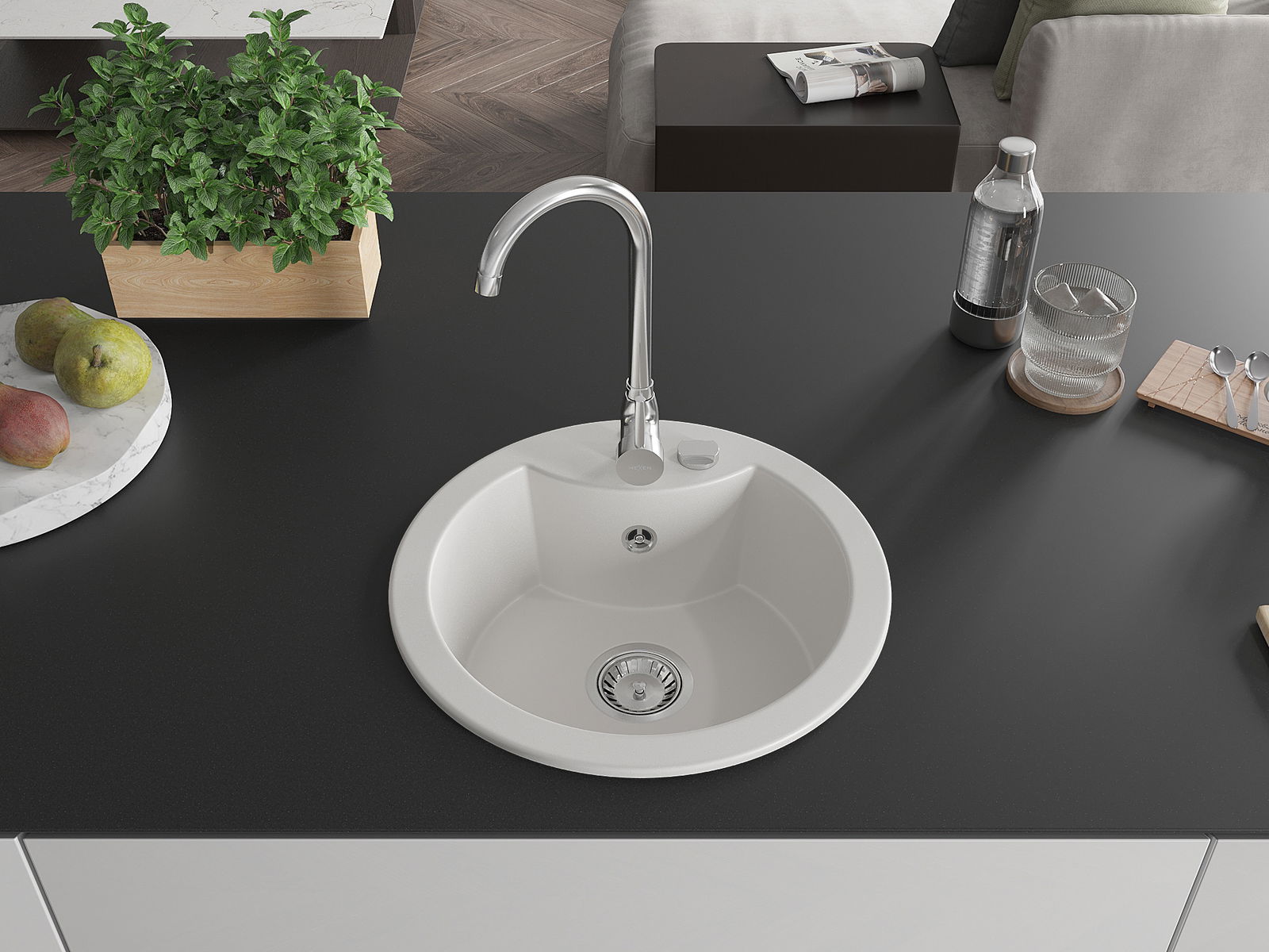 El fregadero está hecho de granito de alta calidad. Constituye un complemento elegante y, sobre todo, práctico para cualquier cocina, independientemente de su estilo. La alta calidad y durabilidad del granito aseguran un uso durante muchos años.