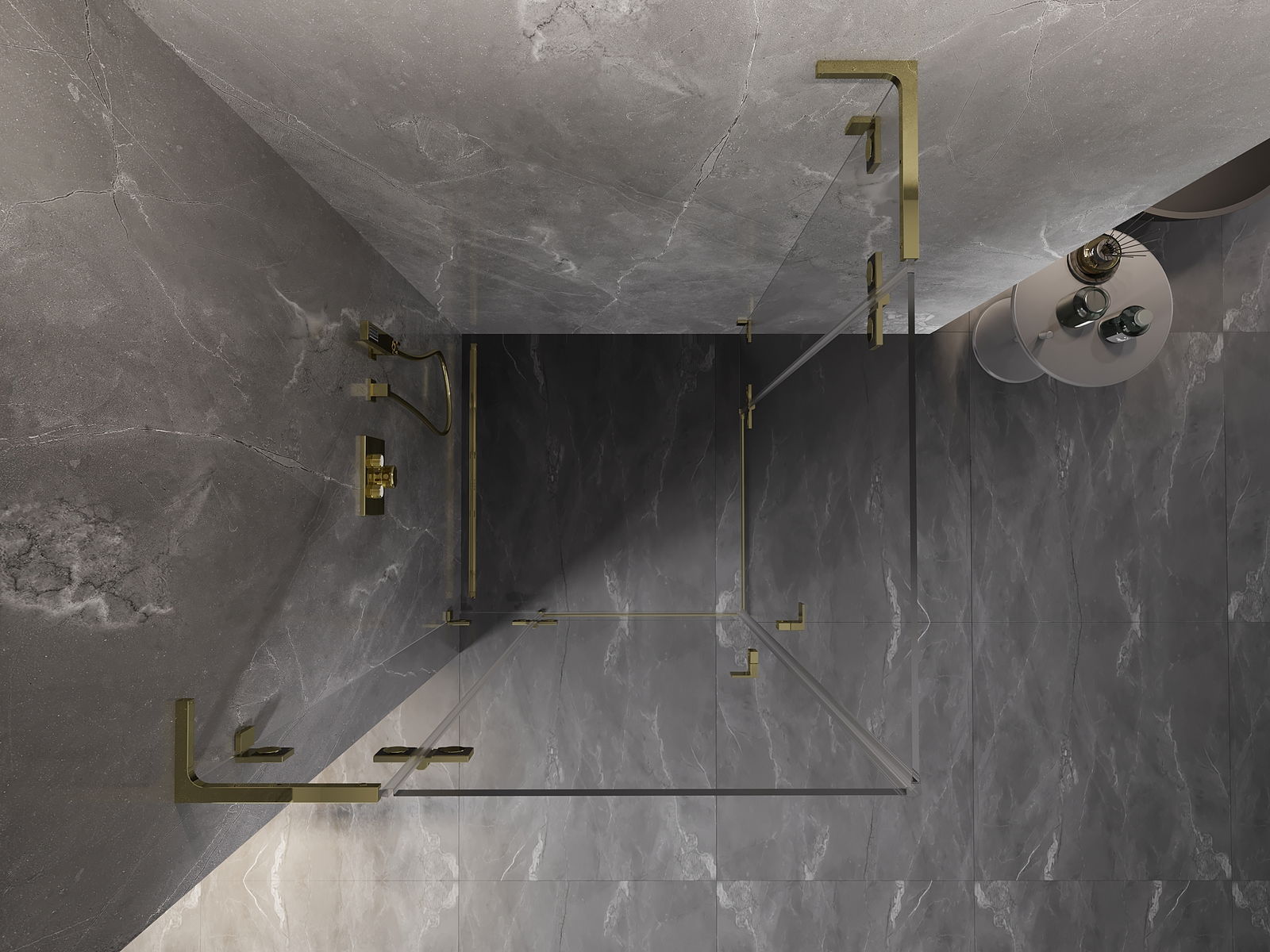 Mexen Lunar L Duo cabina de ducha abatible 95 x 95 cm, transparente, dorada - 834L-095L-095P-50-00