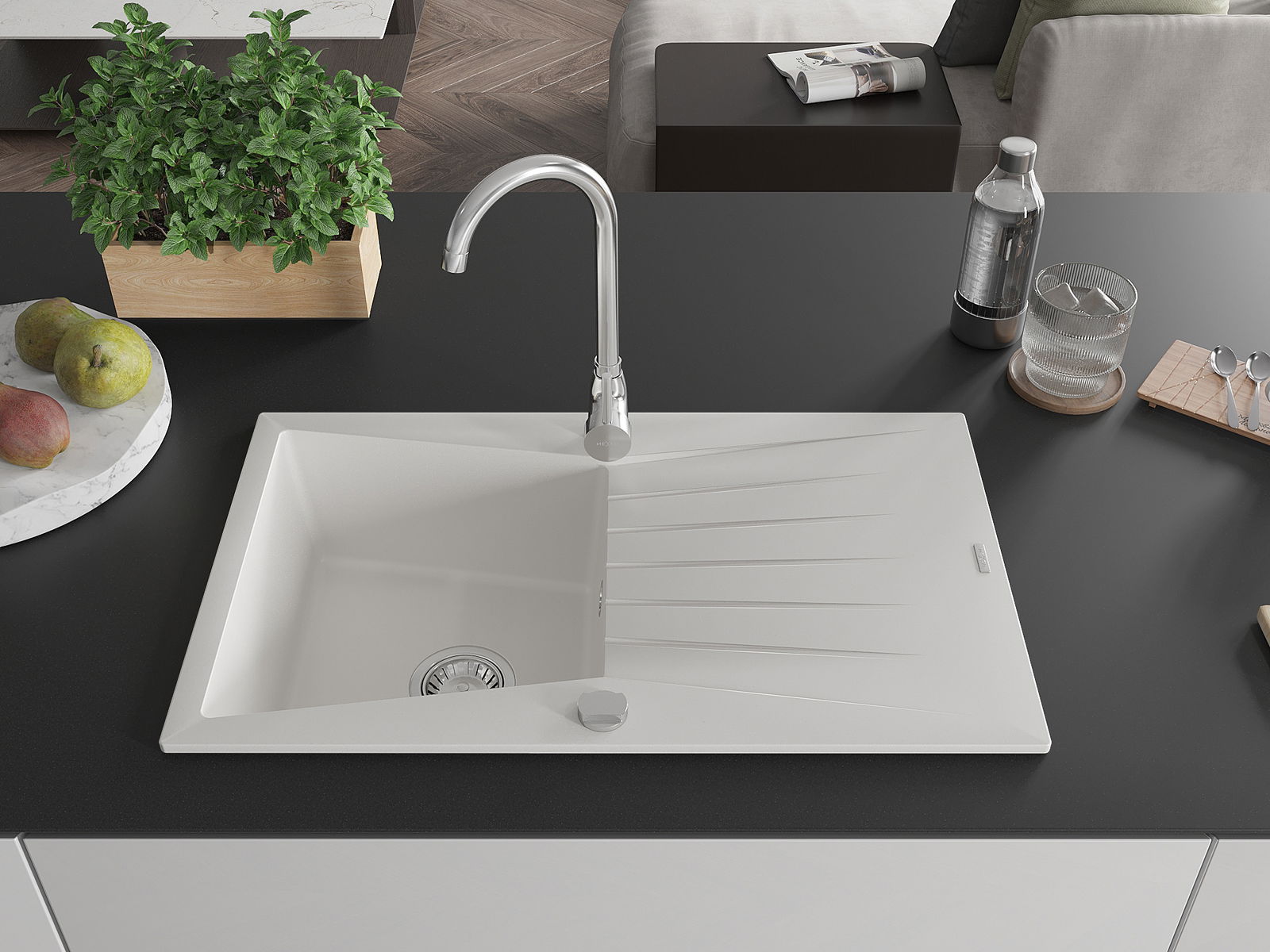 El fregadero está hecho de granito de alta calidad. Constituye un complemento elegante y, sobre todo, práctico para cualquier cocina, independientemente de su estilo. La alta calidad y durabilidad del granito aseguran un uso durante muchos años.