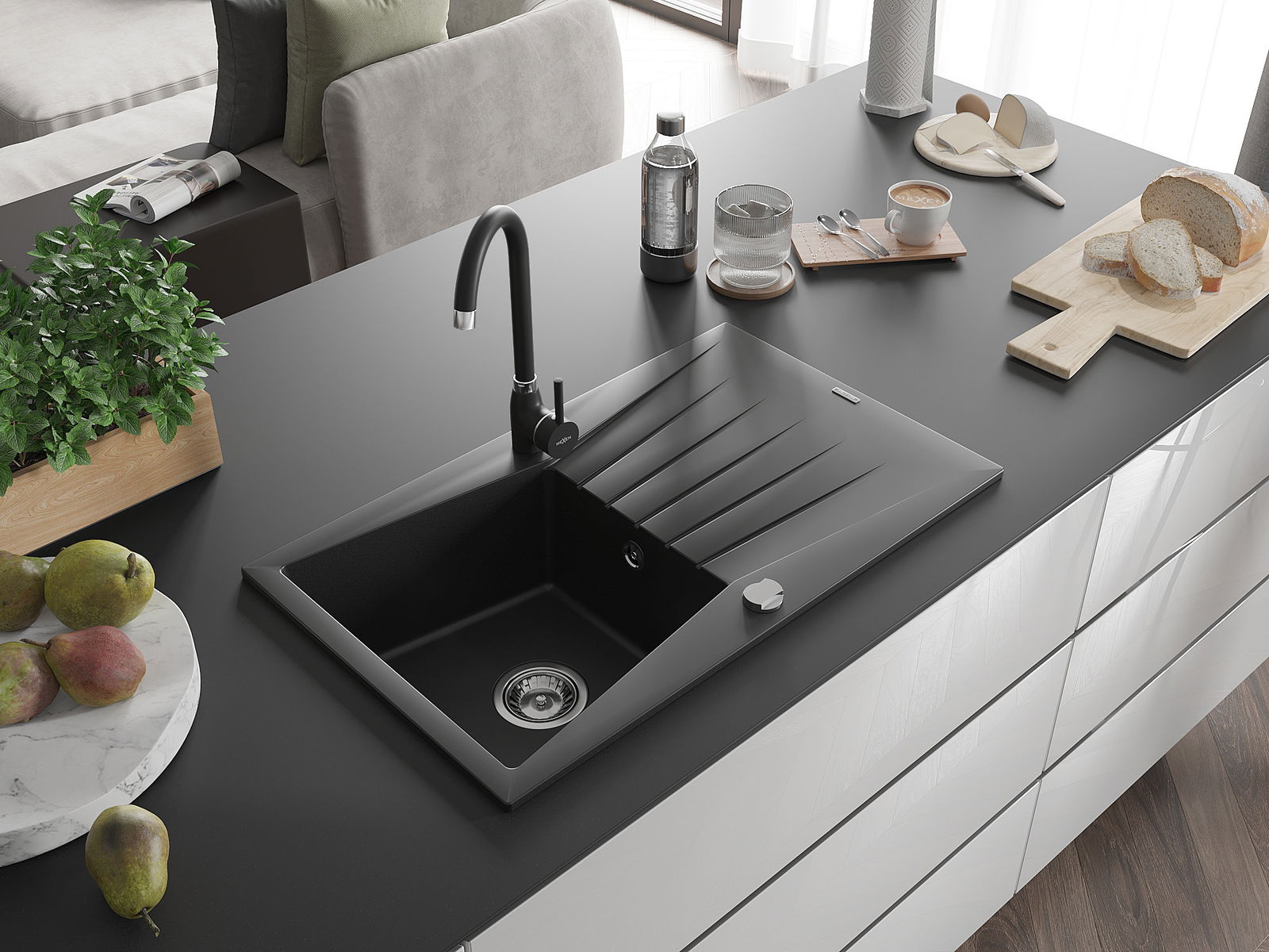 El fregadero está hecho de granito de alta calidad. Constituye un complemento elegante y, sobre todo, práctico para cualquier cocina, independientemente de su estilo. La alta calidad y durabilidad del granito aseguran un uso durante muchos años.