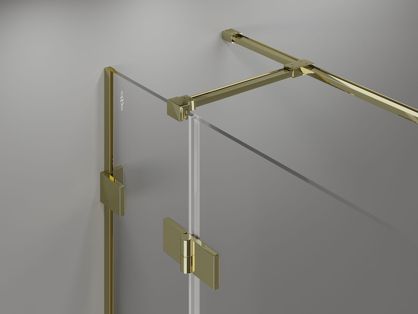Mexen Lunar T cabina de ducha abatible izquierda 120 x 70 cm, transparente, dorada - 834T-120-070-50-00-L