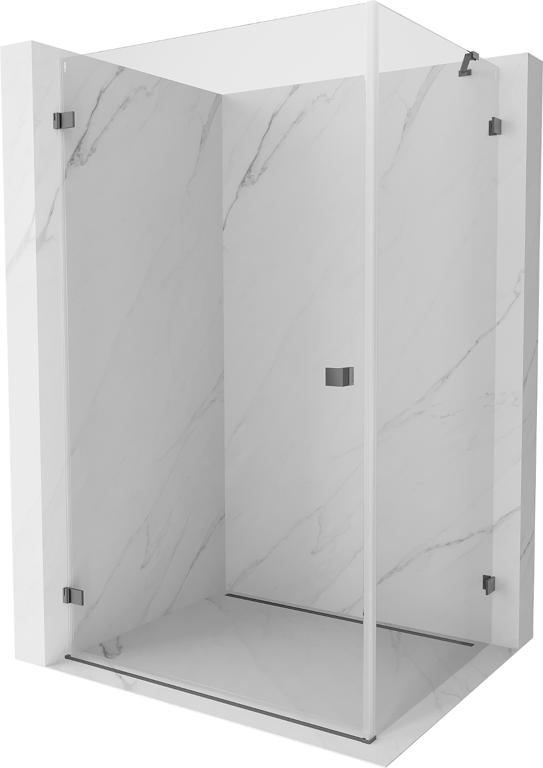 Las puertas abatibles permiten la máxima libertad durante su uso. Cuentan con bisagras sólidas hechas de un material duradero, que no presentan dificultades para mantener la limpieza y permiten un fácil acceso al interior de la cabina.