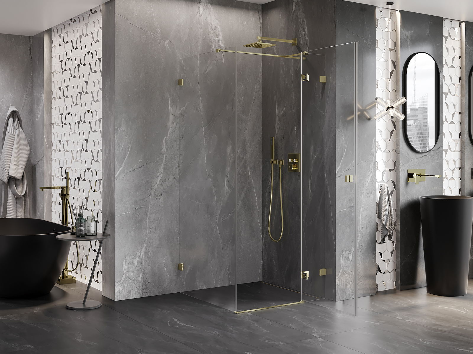 Mexen Lunar T cabina de ducha abatible derecha 110 x 110 cm, transparente, dorada - 834T-110-110-50-00-P