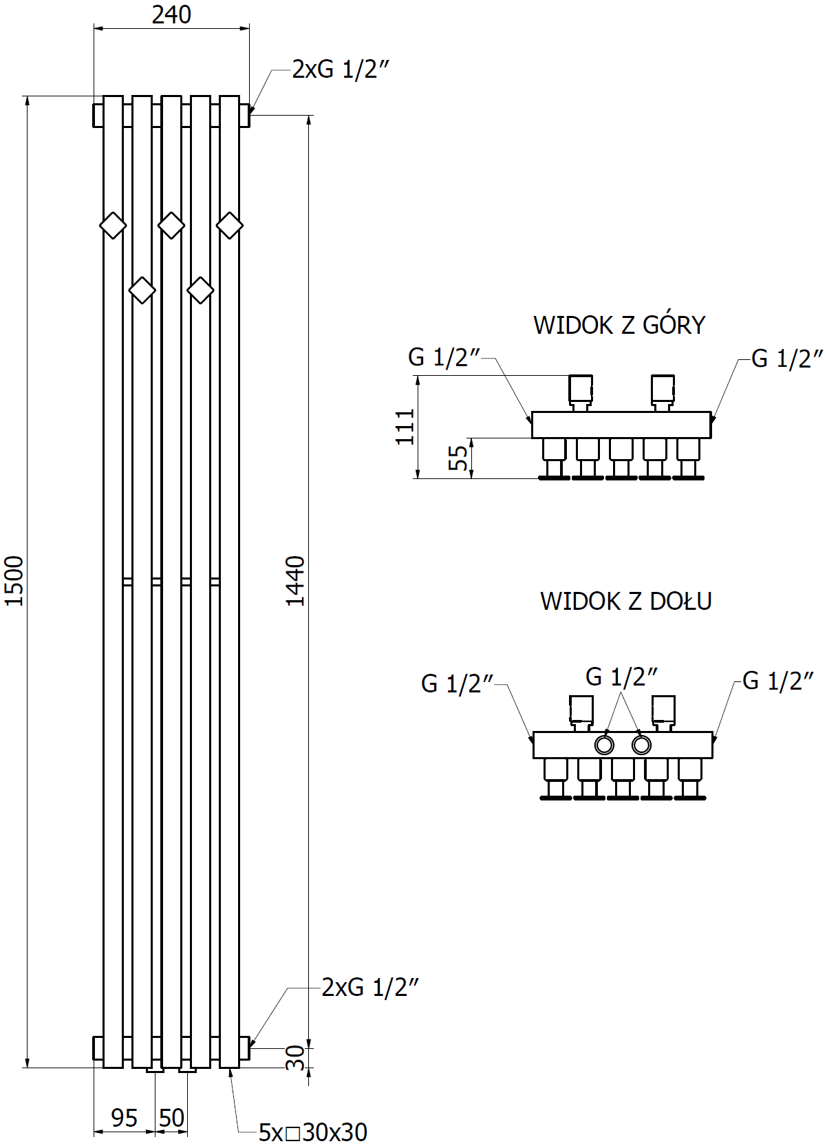 - 2xG ½″ central
