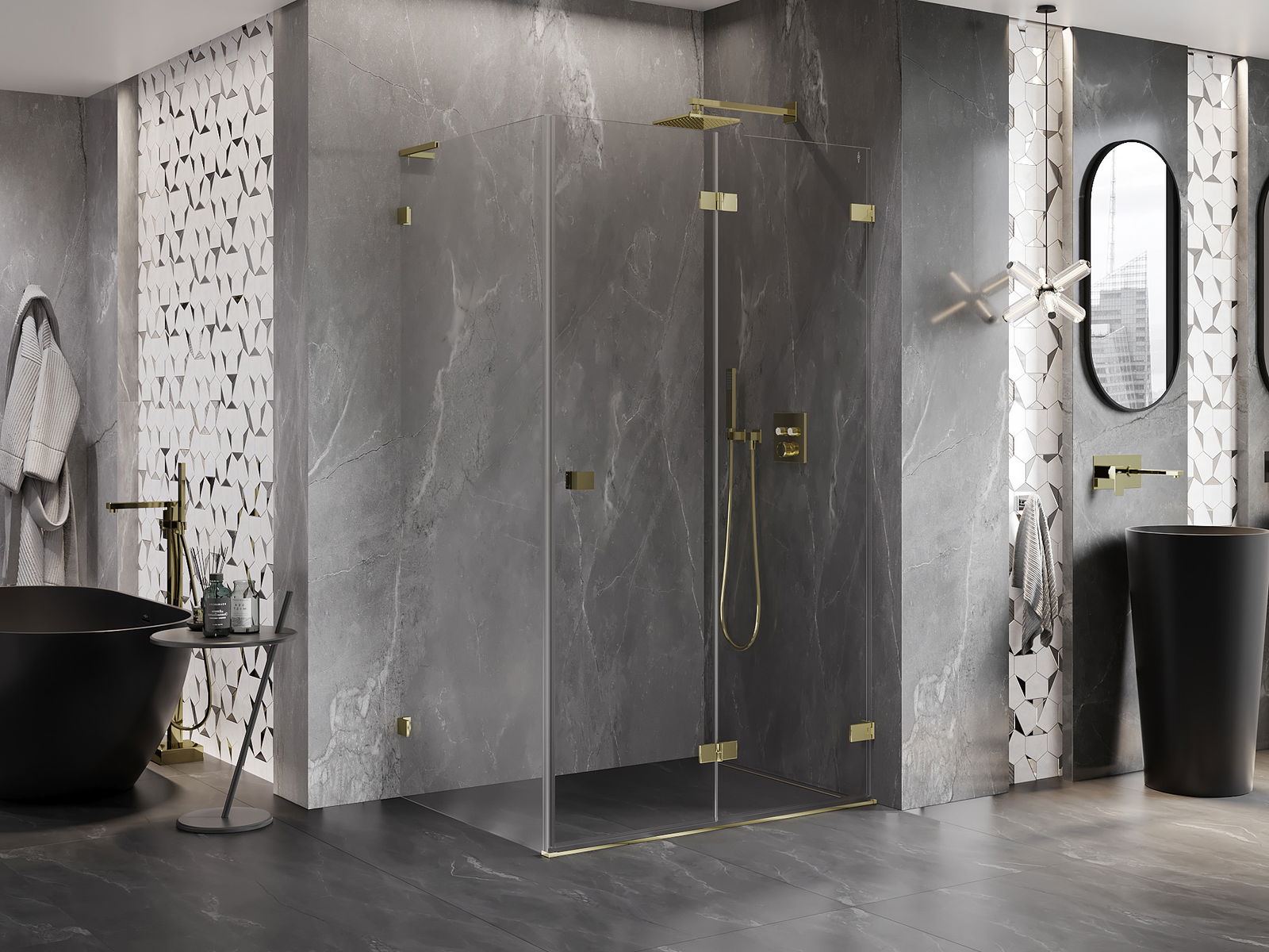 Mexen Lunar-F L cabina de ducha plegable derecha 90 x 70 cm, transparente, dorada - 836L-090-070-50-00-P