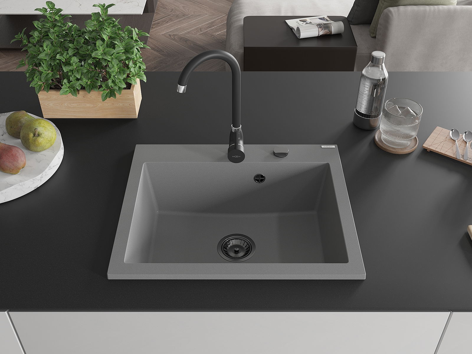 El fregadero está hecho de granito de alta calidad. Constituye un complemento elegante y, sobre todo, práctico para cualquier cocina, independientemente de su estilo. La alta calidad y durabilidad del granito aseguran un uso durante muchos años.