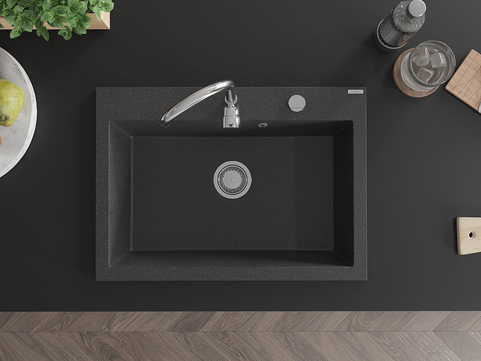 Mexen Elix fregadero de granito de 1 cámar, 700 x 500 mm, negro moteado, sifón cromado - 6526701005-76