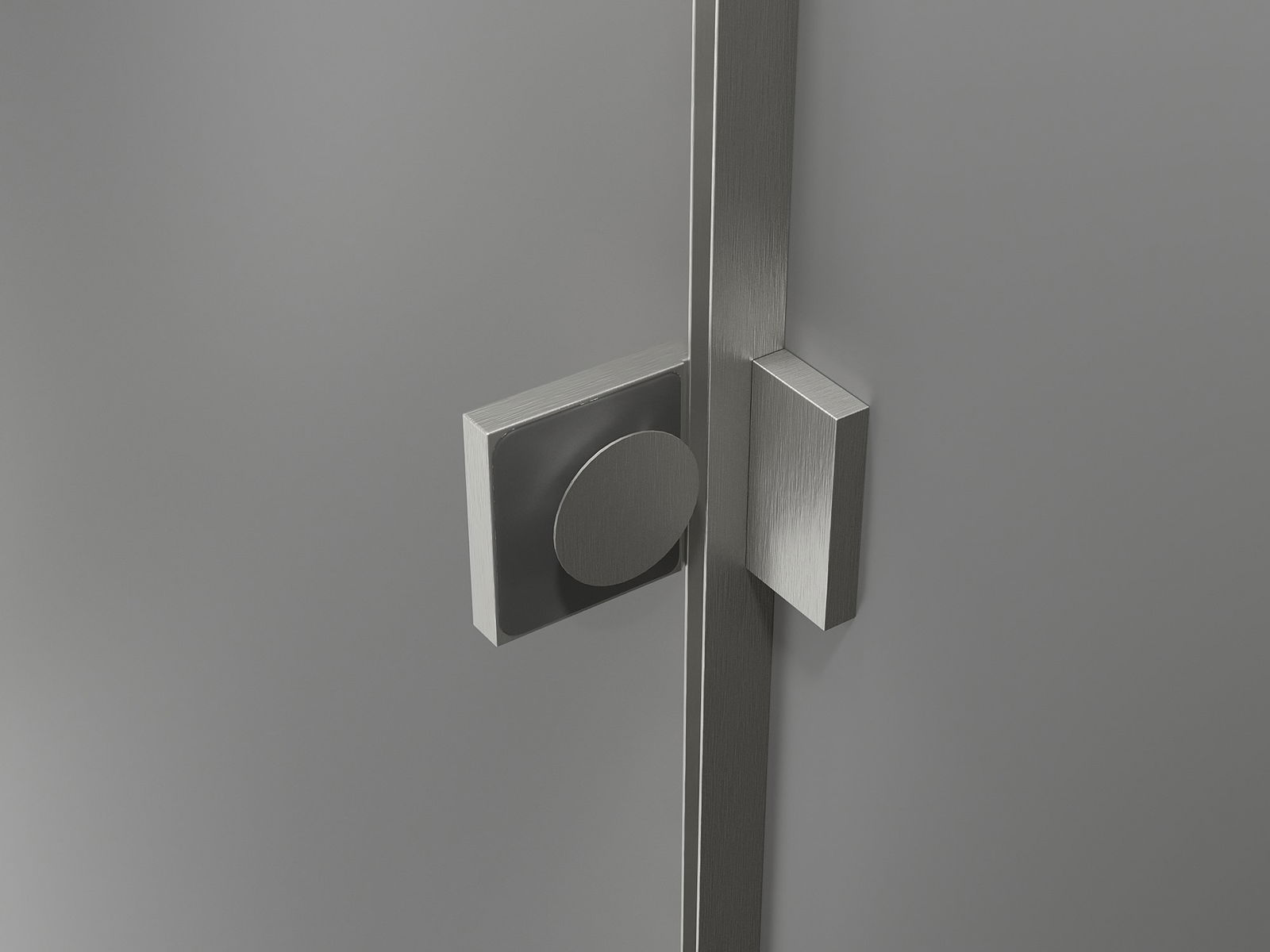 Un asa práctico y cómodo hecho de metal duradero y resistente. La forma moderna combinada con un acabado que se adapta al color de los perfiles le da a todo un aspecto moderno y estilizado, destacando la estética de cada baño.