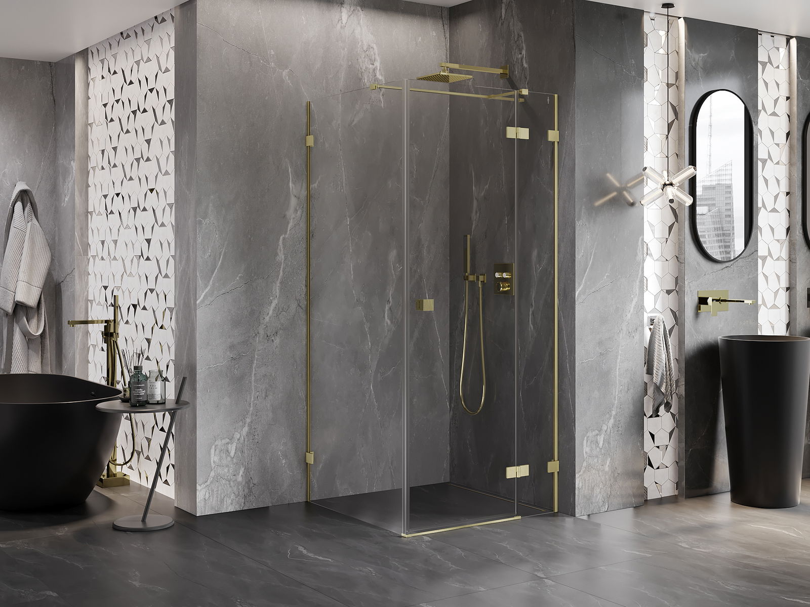 Mexen Lunar T cabina de ducha abatible derecha 120 x 120 cm, transparente, oro cepillado - 834T-120-120-55-00-P