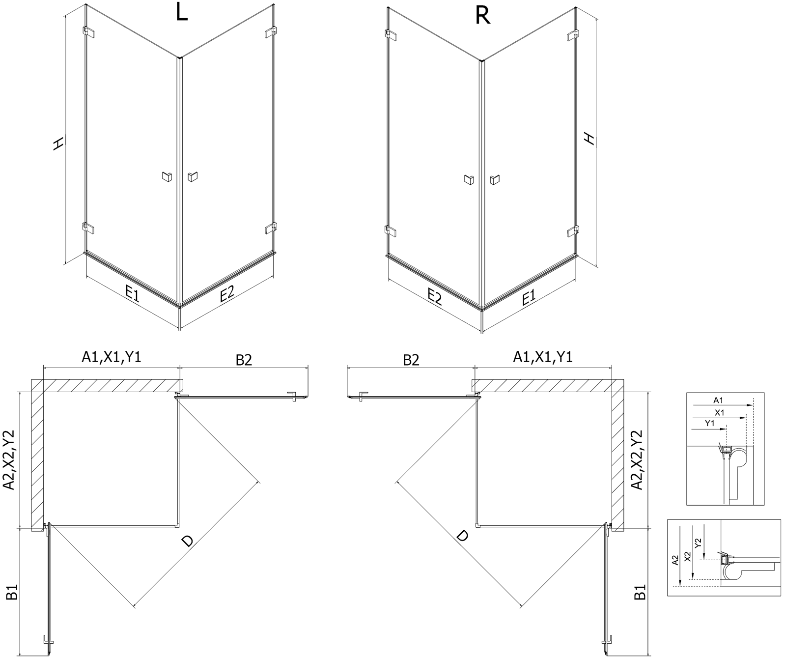 Las puertas abatibles permiten la máxima libertad durante su uso. Cuentan con bisagras sólidas hechas de un material duradero, que no presentan dificultades para mantener la limpieza y permiten un fácil acceso al interior de la cabina.