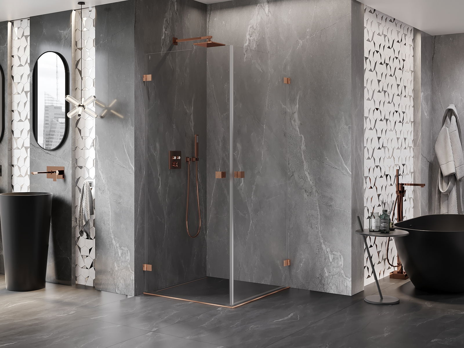 Mexen Lunar-B Duo cabina de ducha abatible 90 x 90 cm, transparente, cobre cepillado - 832-090L-090P-65-00