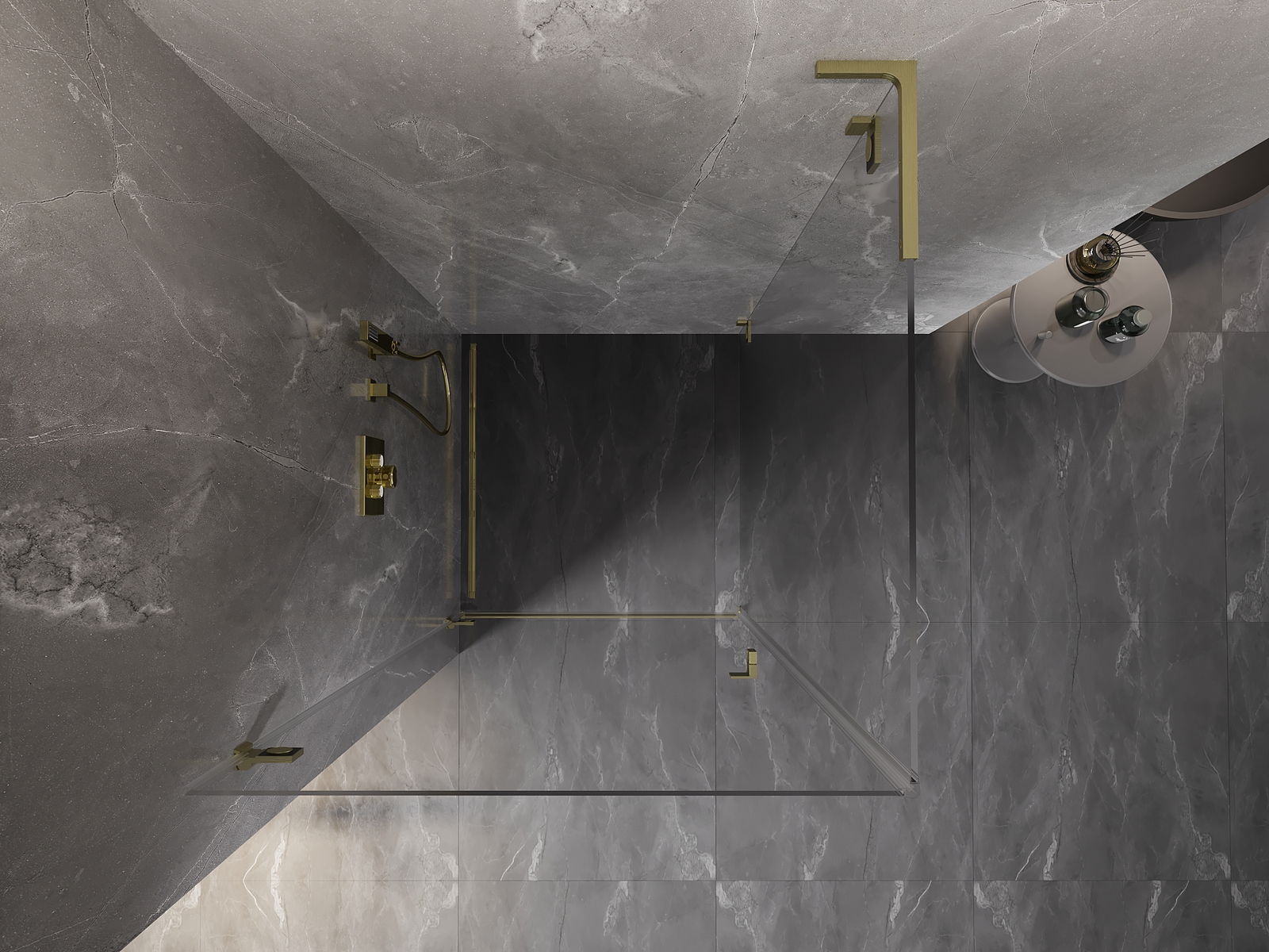 Mexen Lunar-B L cabina de ducha abatible izquierda 100 x 100 cm, transparente, oro cepillado - 832L-100-100-55-00-L