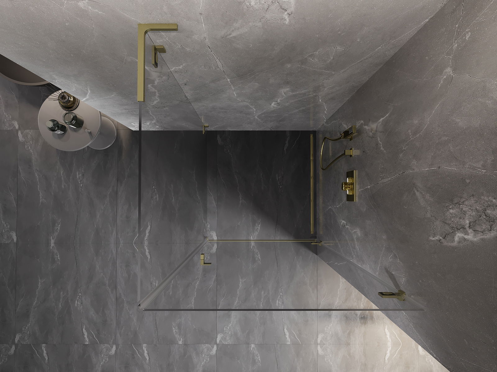 Mexen Lunar-B L cabina de ducha abatible derecha 90 x 90 cm, transparente, dorado cepillado - 832L-090-090-55-00-P