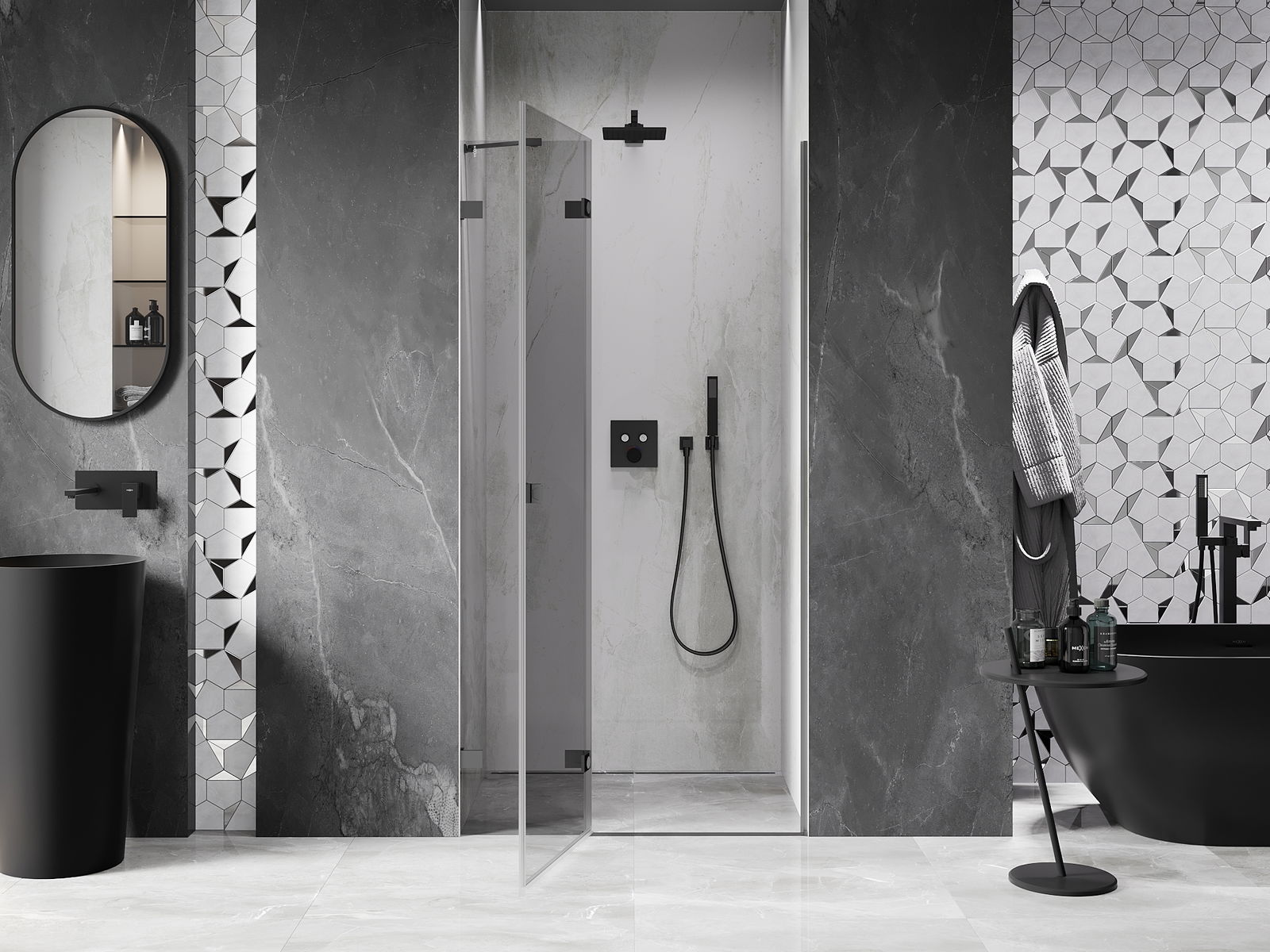 Mexen Lunar puerta de ducha abatible izquierda 85 cm, transparente, gun metal - 834-085-000-95-00-L