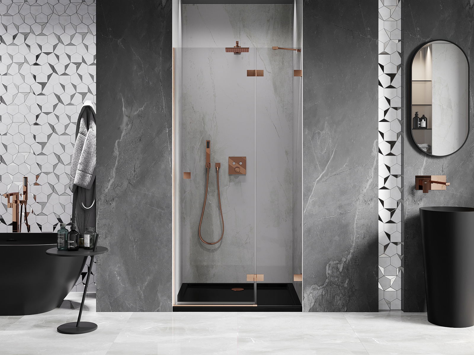 Mexen Lunar puerta de ducha abatible derecha 125 cm, transparente, cobre cepillado - 834-125-000-65-00-P