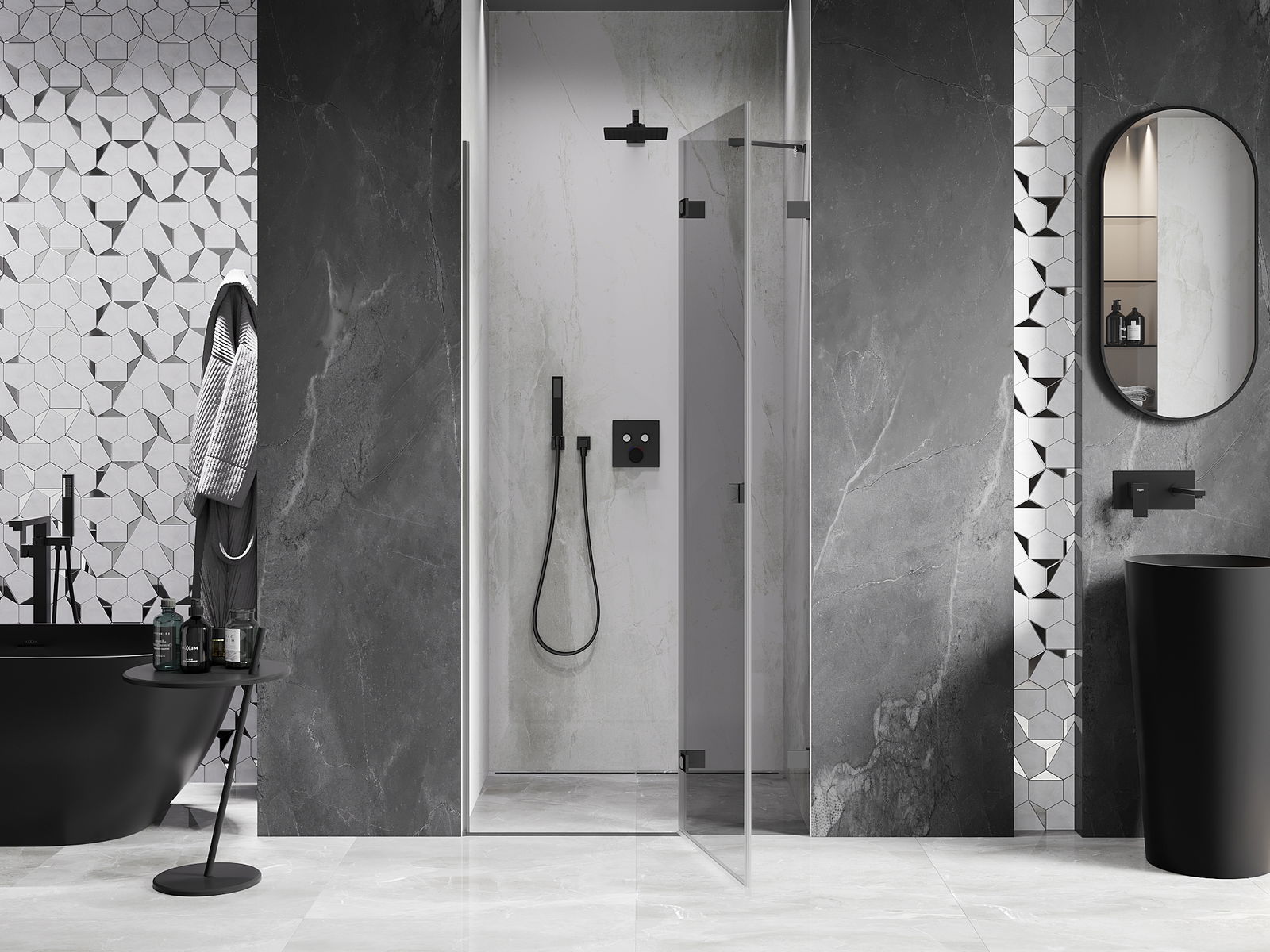 Las abrazaderas y bisagras están hechas de latón muy duradero, y además crean una superficie de vidrio al ras. Es una excelente opción que combina elegancia, durabilidad y diseño moderno. Gracias a tales soluciones, la ducha gana en estética y, al mismo tiempo, facilitan el mantenimiento de la limpieza.