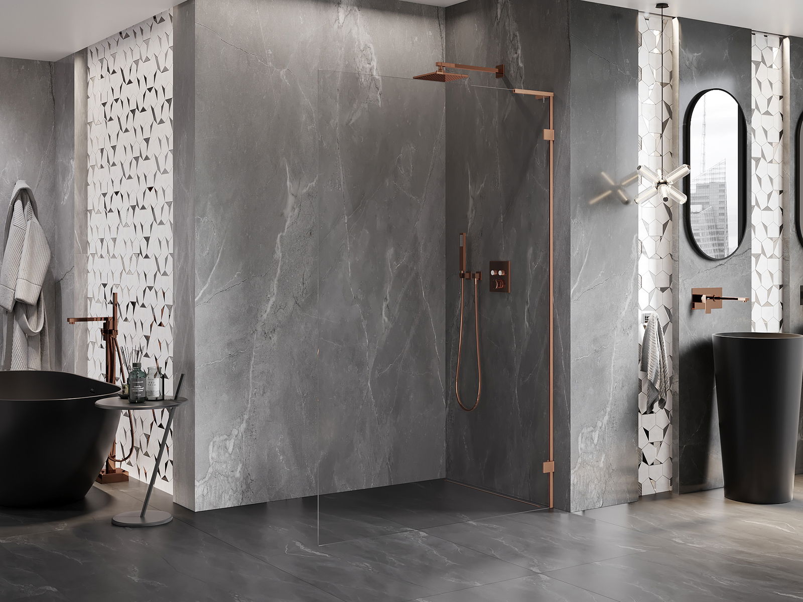 Mexen Lunar L mampara de ducha Walk-in derecha 60 x 200 cm, transparente 8 mm, cobre cepillado - 830L-060-000-65-00-P