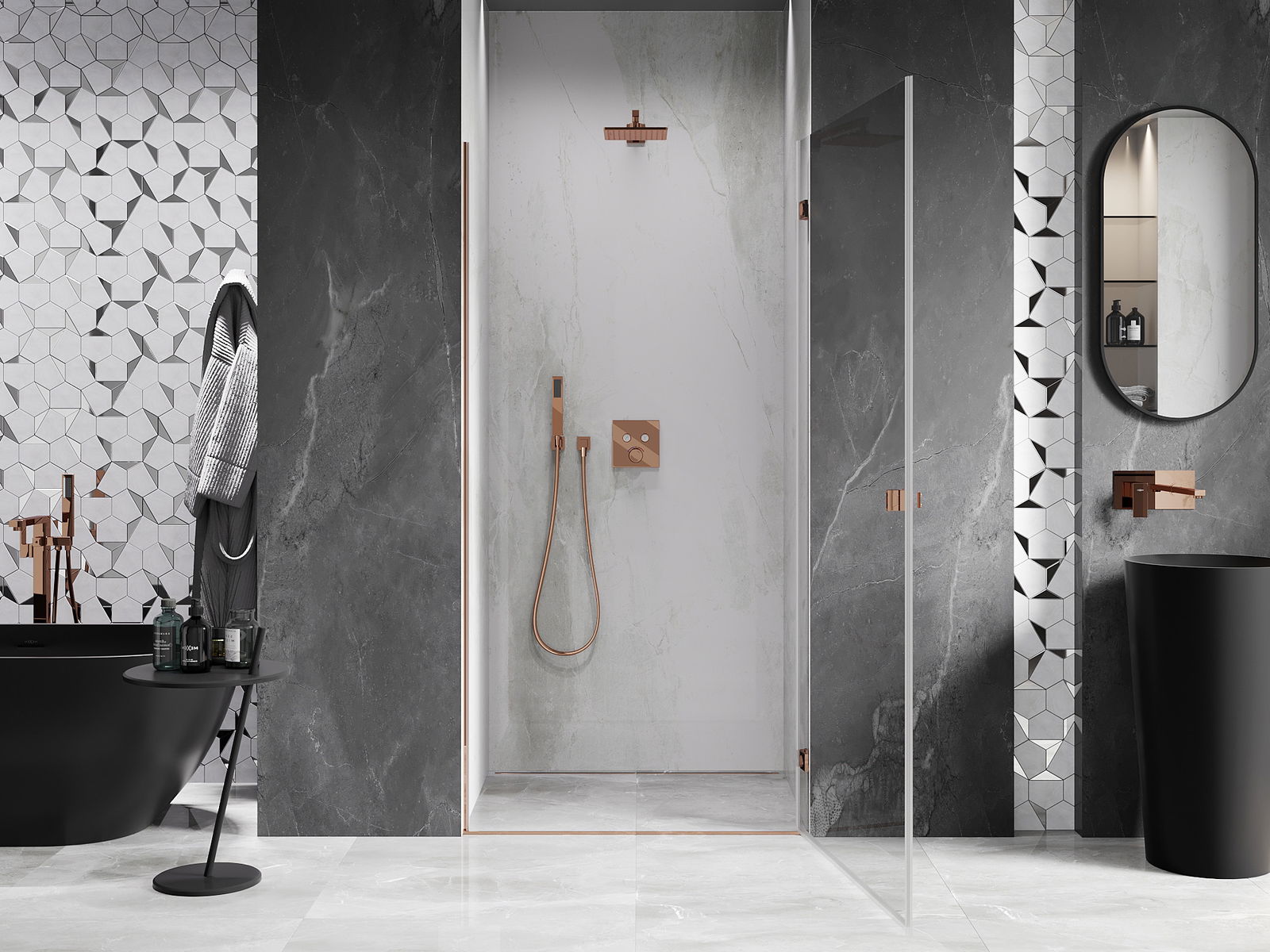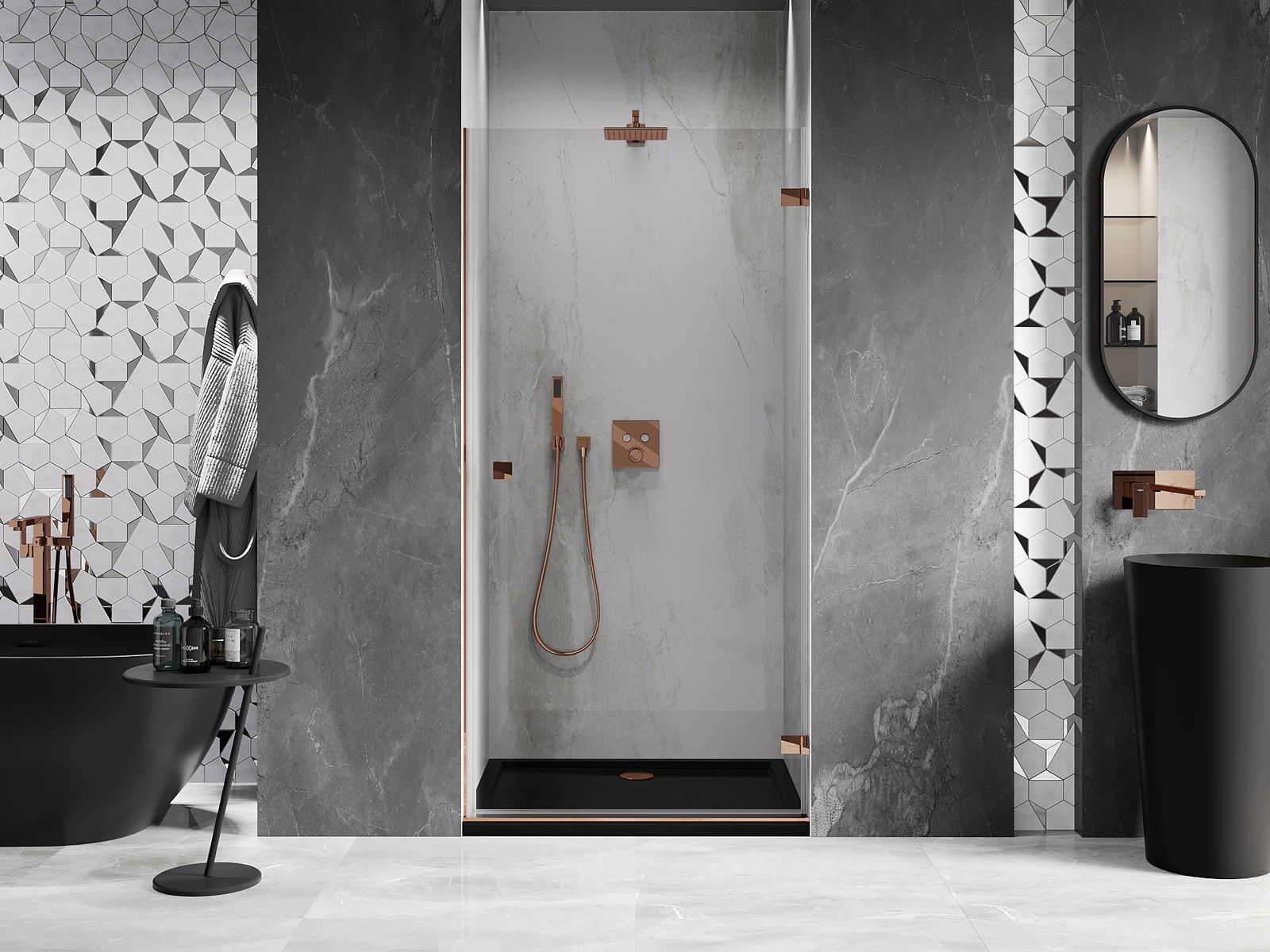 Mexen Lunar-B puerta de ducha abatible derecha 95 cm, transparente, oro rosa - 832-095-000-60-00-P