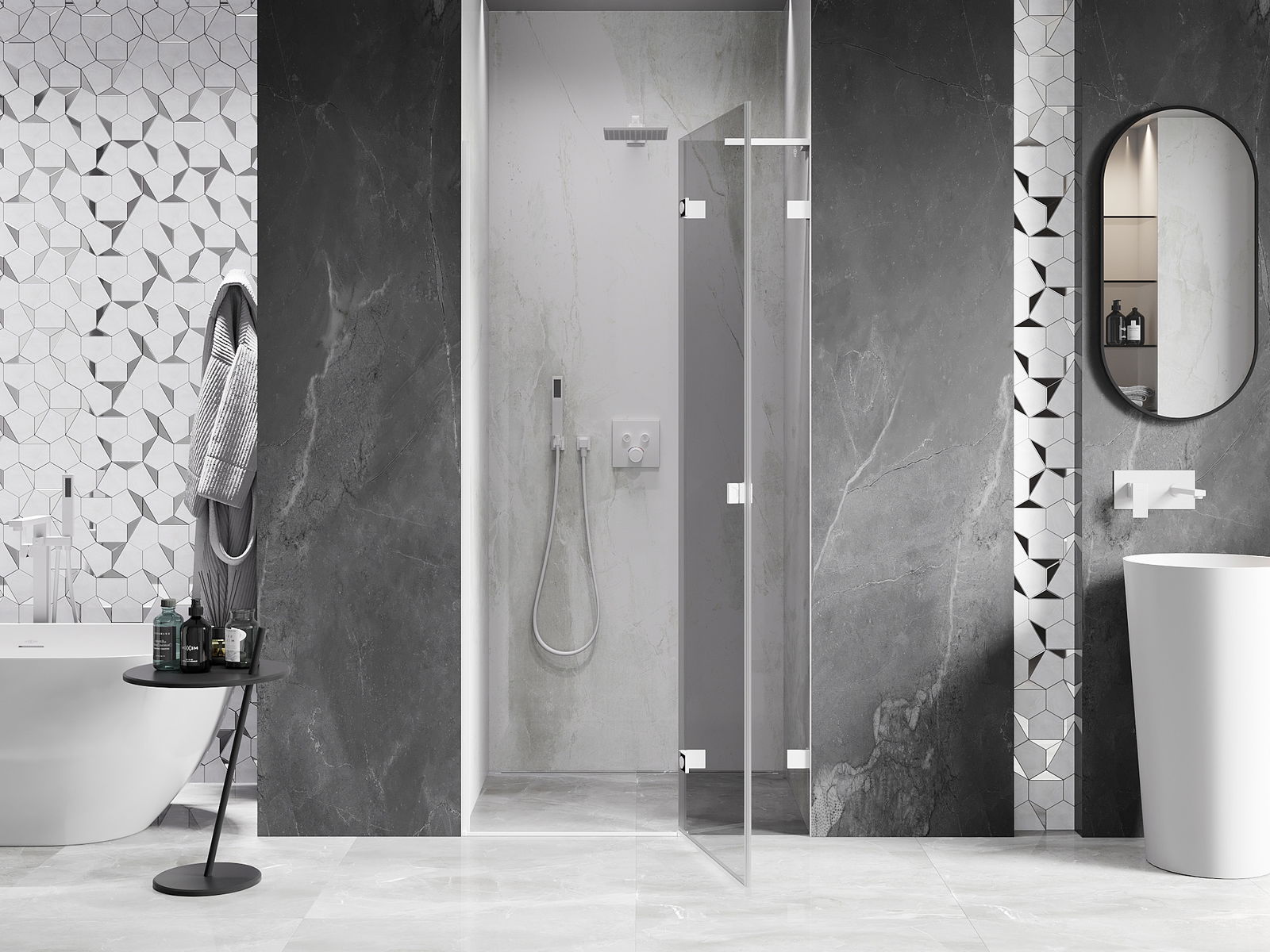 Mexen Lunar L puerta de ducha abatible derecha 125 cm, transparente, blanco - 834L-125-000-20-00-P