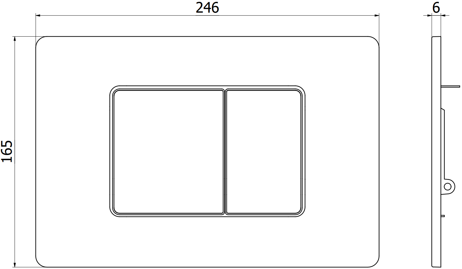 El botón está diseñado para bastidores empotrados, donde el lugar de montaje se encuentra en la parte frontal de la construcción. Esta ubicación garantiza un acceso fácil y un manejo cómodo de la descarga.