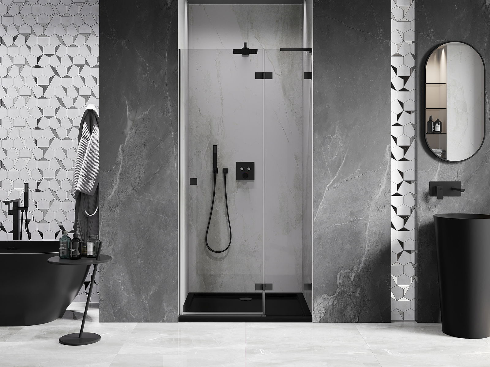 Mexen Lunar L puerta de ducha abatible derecha 120 cm, transparente, negro - 834L-120-000-70-00-P