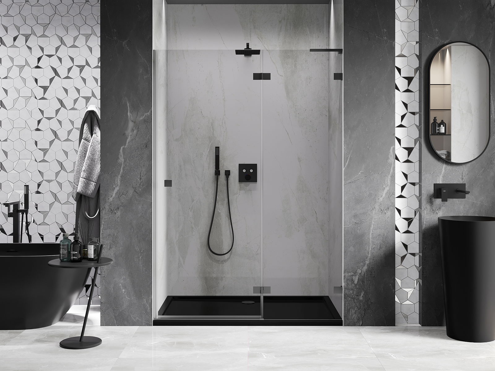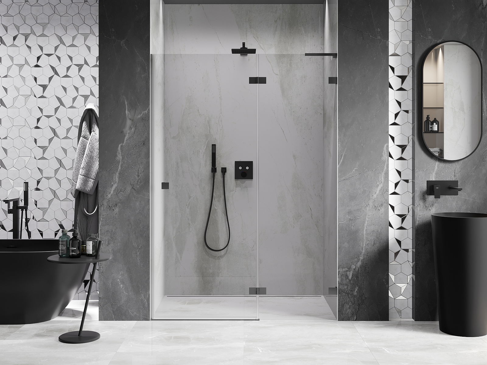 Mexen Lunar L puertas de ducha abatibles derechas 130 cm, transparentes, gun metal - 834L-130-000-95-00-P