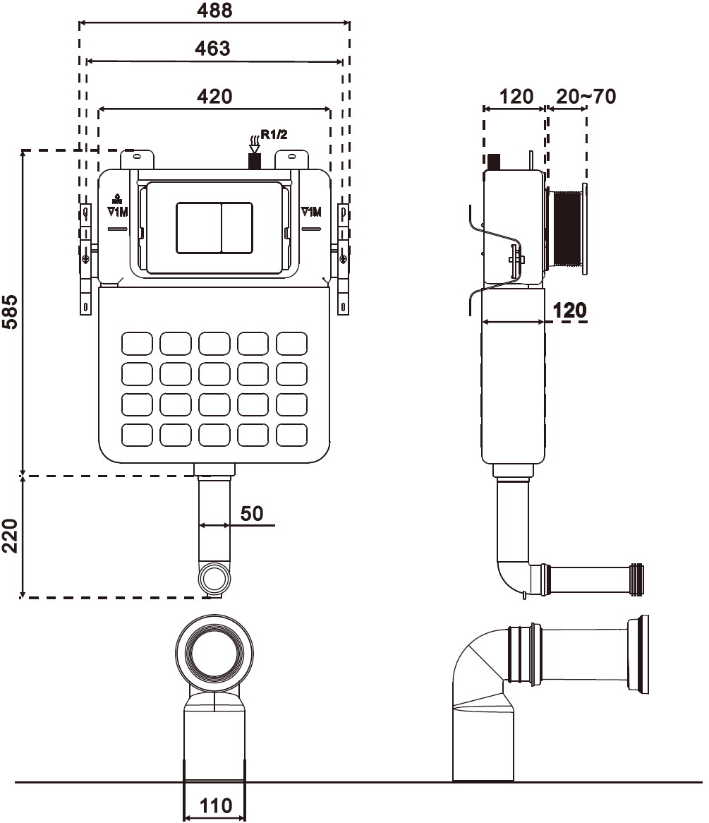 La estructura empotrada para inodoro de pie Mexen Tex S ofrece fiabilidad y funcionalidad. Con una altura de 79 cm, anchura de 48 cm y grosor de 12 cm, se adapta perfectamente a diversos espacios. Proporciona una descarga mecánica sin problemas, y su montaje en pared completa o de cartón yeso es rápido y sencillo. Los soportes galvanizados garantizan durabilidad, mientras que el depósito con aislamiento antidióxido previene eficazmente la condensación. La posibilidad de ajustar la cantidad de agua de descarga (3/6 L, 4/7 L, 4,5/9 L) es una ventaja adicional que permite el ahorro de agua. El producto se puede completar con los botones Mexen de la serie Tex, lo que permite crear una estética coherente en el baño.