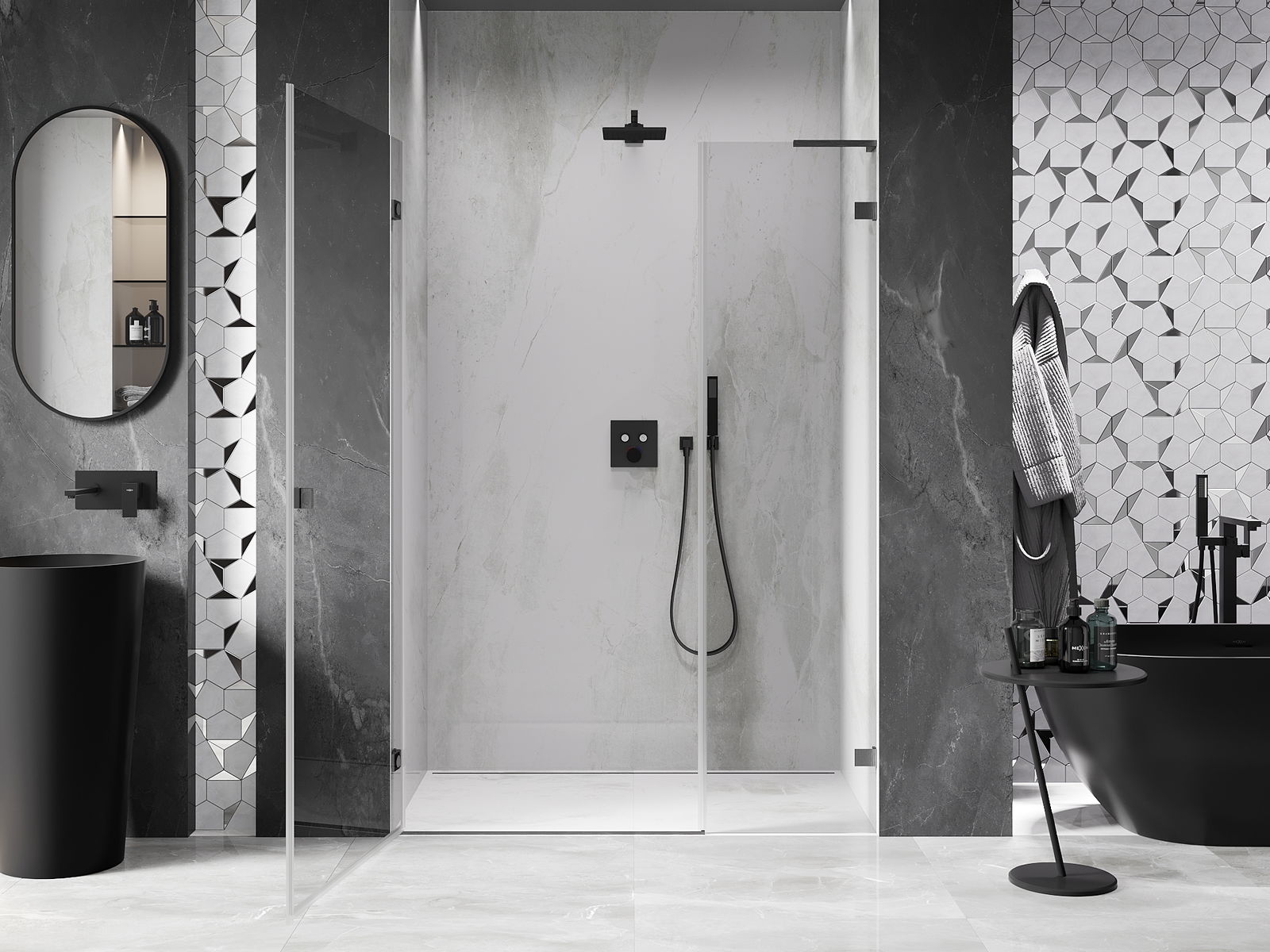 Mexen Rio cabina de ducha cuadrada 90 x 90 cm, transparente, negra - 860-090-090-70-00