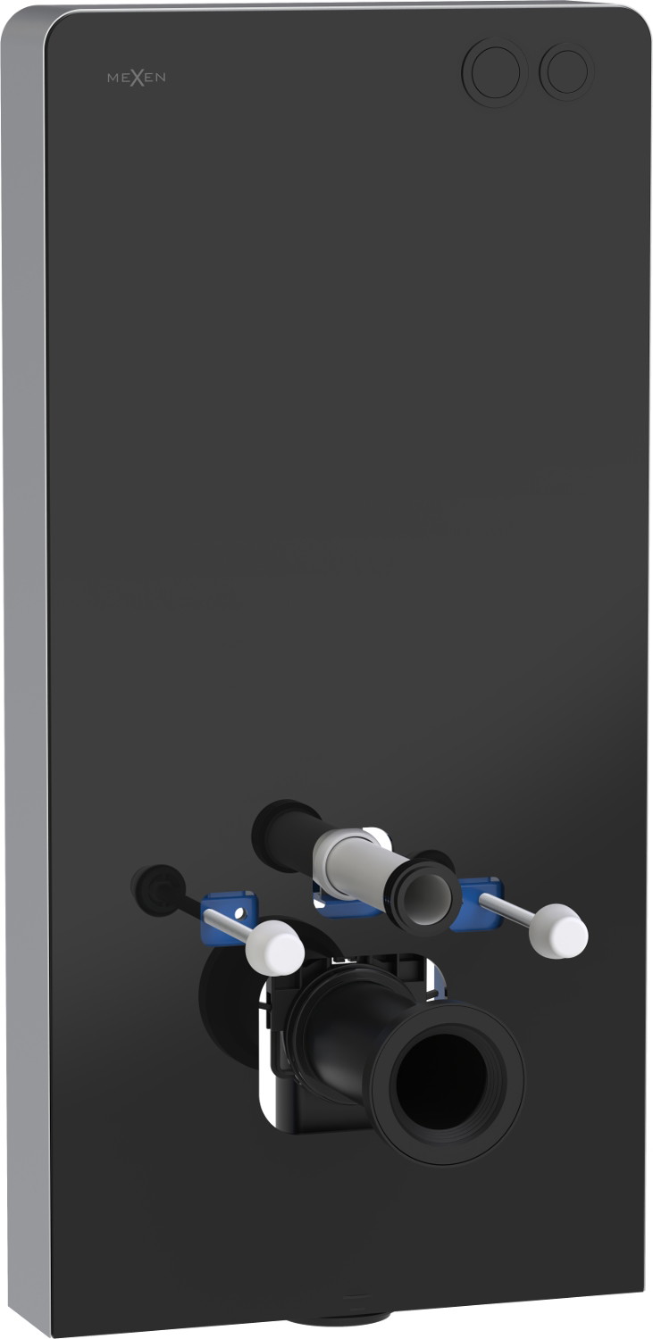 El Mexen Tex Air G es una elegante estructura de montaje sobresaliente con un diseño excepcional, ideal para interiores modernos. Gracias a su carcasa frontal de vidrio templado en color negro y al aluminio cepillado en los laterales, la estructura se integra perfectamente con diversos estilos de baños. El producto, con unas dimensiones de 103 cm de altura, 50 cm de ancho y 12 cm de grosor, está equipado con un botón de descarga neumático que permite regular la cantidad de agua (3/6 L). Es universal, adecuado para inodoros suspendidos y de pie (orificios de 18 o 23 cm), lo que lo convierte en una excelente opción para diversas soluciones de baño.