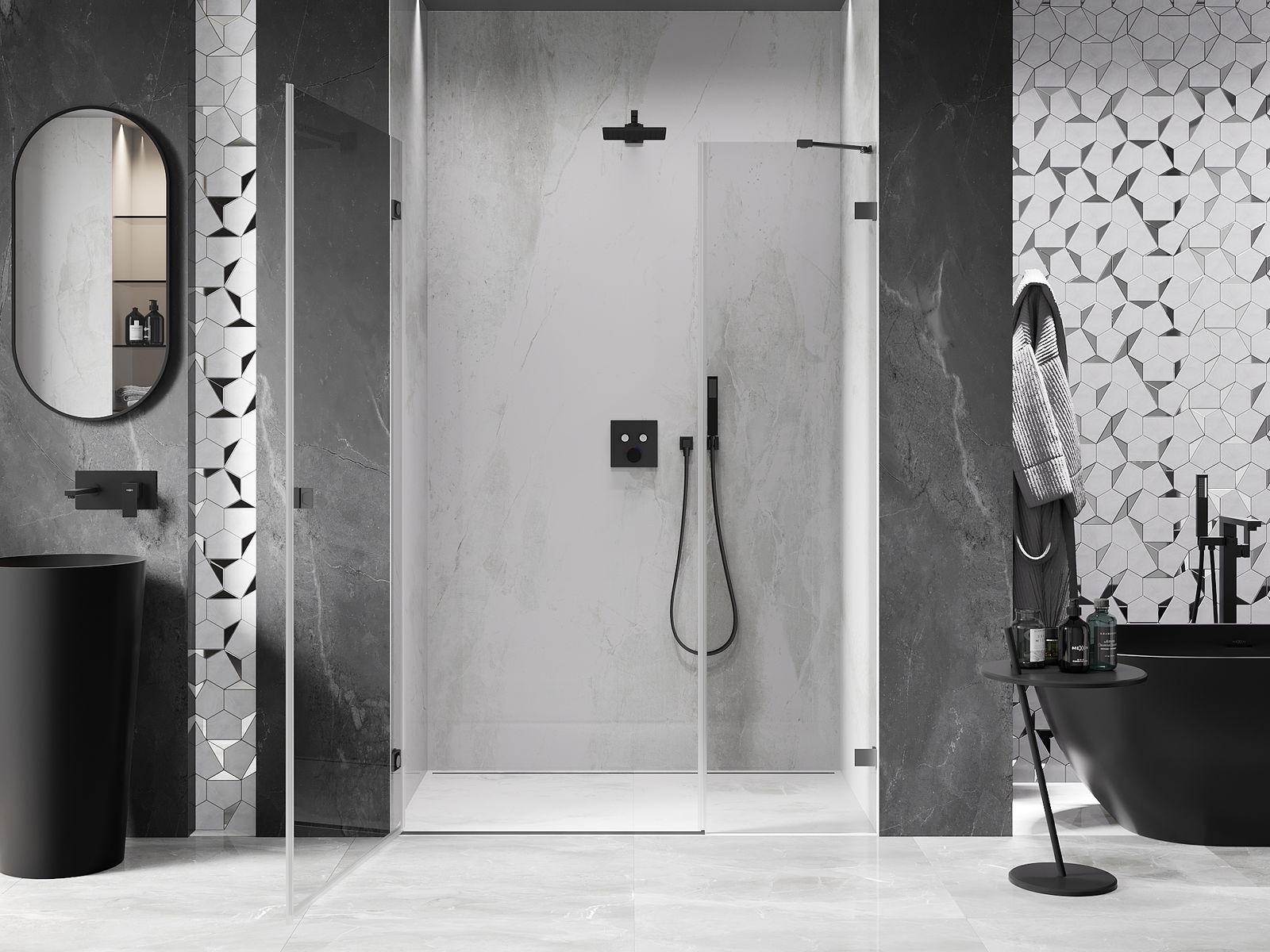 Las puertas abatibles permiten la máxima libertad durante su uso. Cuentan con bisagras sólidas hechas de un material duradero, que no presentan dificultades para mantener la limpieza y permiten un fácil acceso al interior de la cabina.