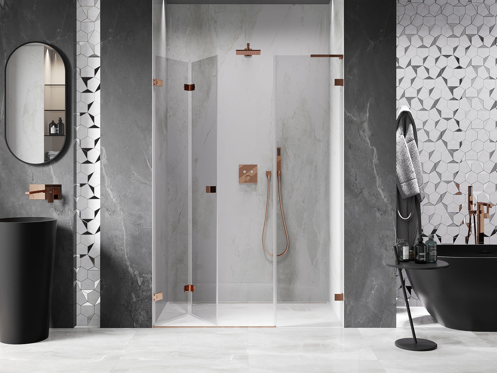 Mexen Lunar-F L puertas de ducha plegables izquierda 140 cm, transparente, oro rosa - 836SL-140-050-60-00-L