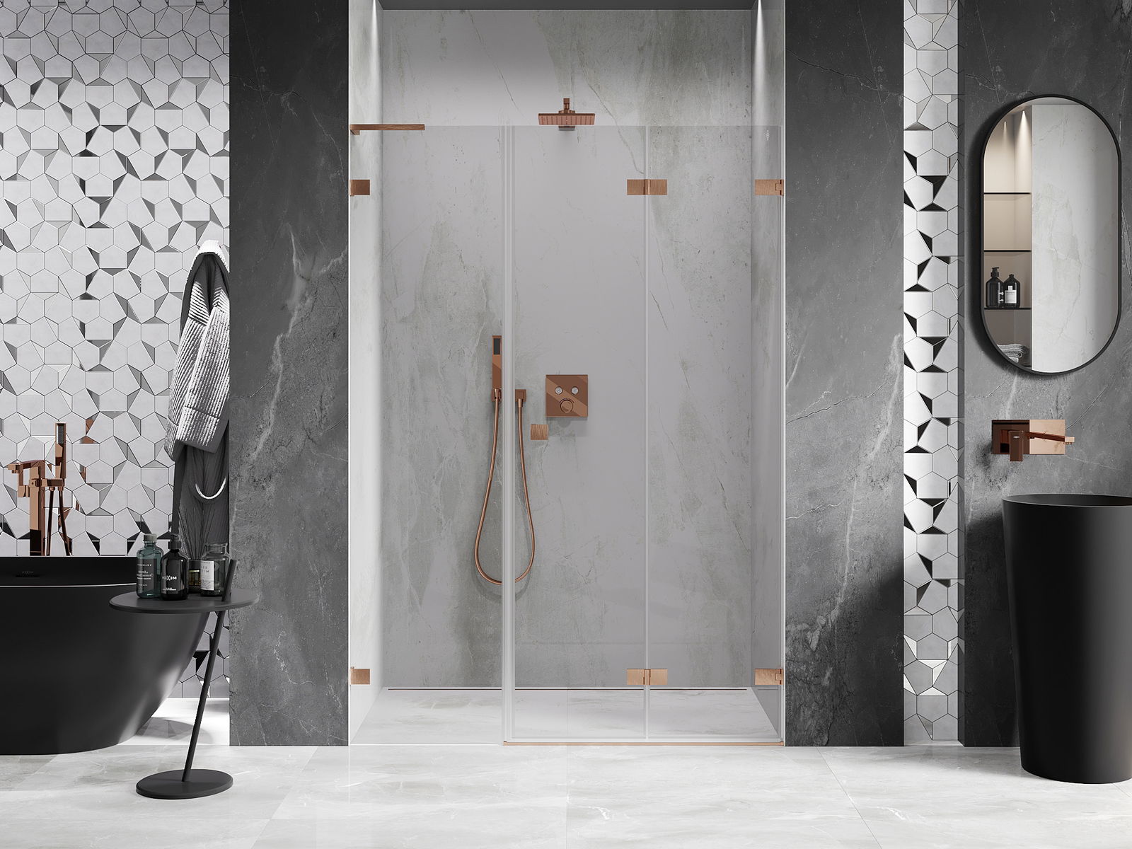 Mexen Lunar-F L puertas de ducha plegables derechas 135 cm, transparente, cobre cepillado - 836SL-135-050-65-00-P