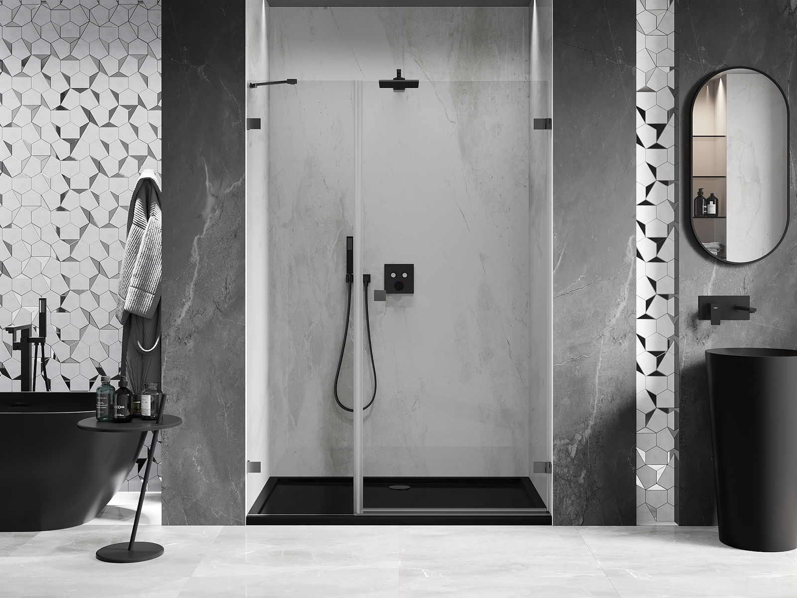 Las puertas abatibles permiten la máxima libertad durante su uso. Cuentan con bisagras sólidas hechas de un material duradero, que no presentan dificultades para mantener la limpieza y permiten un fácil acceso al interior de la cabina.