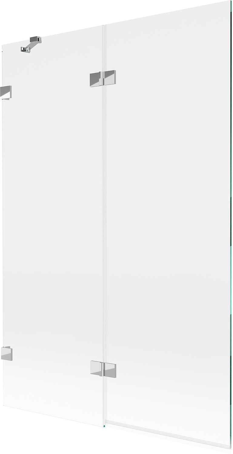 Paraván hecho de dos hojas con posibilidad de plegado. Esta solución permite ahorrar más espacio en el baño y permite el uso libre del espacio restante cuando no estamos usando la zona de baño.