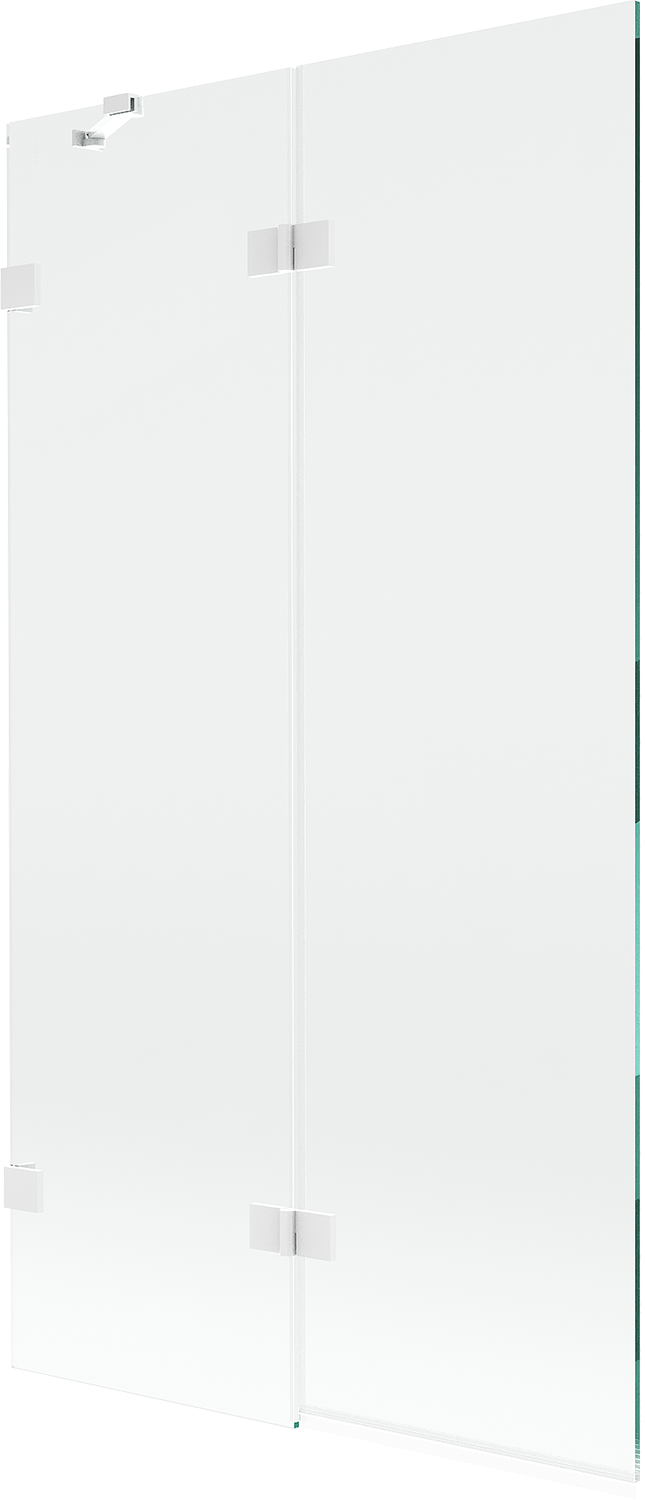 Paraván hecho de dos hojas con posibilidad de plegado. Esta solución permite ahorrar más espacio en el baño y permite el uso libre del espacio restante cuando no estamos usando la zona de baño.