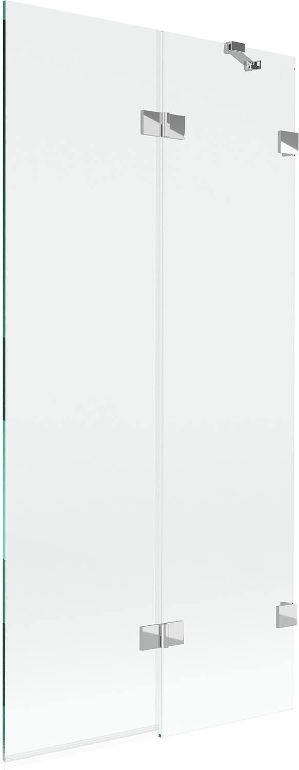 Paraván hecho de dos hojas con posibilidad de plegado. Esta solución permite ahorrar más espacio en el baño y permite el uso libre del espacio restante cuando no estamos usando la zona de baño.