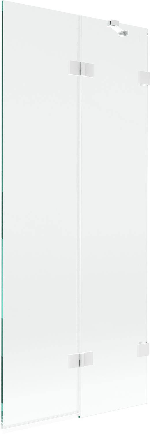 Paraván hecho de dos hojas con posibilidad de plegado. Esta solución permite ahorrar más espacio en el baño y permite el uso libre del espacio restante cuando no estamos usando la zona de baño.