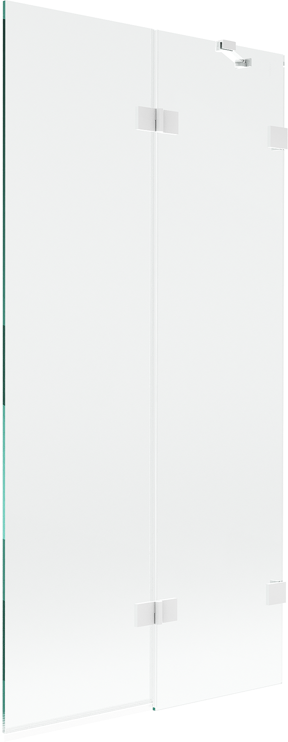 Paraván hecho de dos hojas con posibilidad de plegado. Esta solución permite ahorrar más espacio en el baño y permite el uso libre del espacio restante cuando no estamos usando la zona de baño.