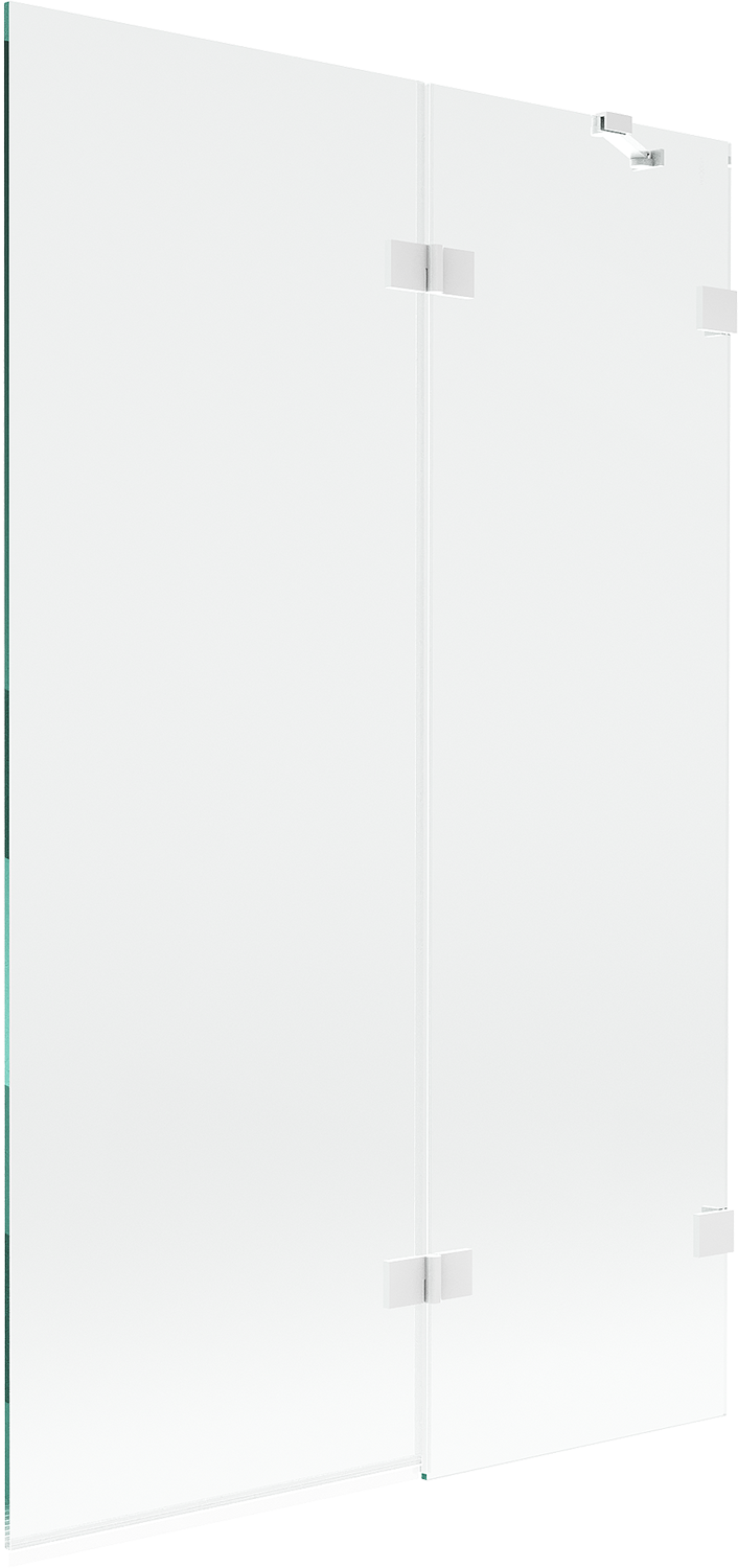 Paraván hecho de dos hojas con posibilidad de plegado. Esta solución permite ahorrar más espacio en el baño y permite el uso libre del espacio restante cuando no estamos usando la zona de baño.